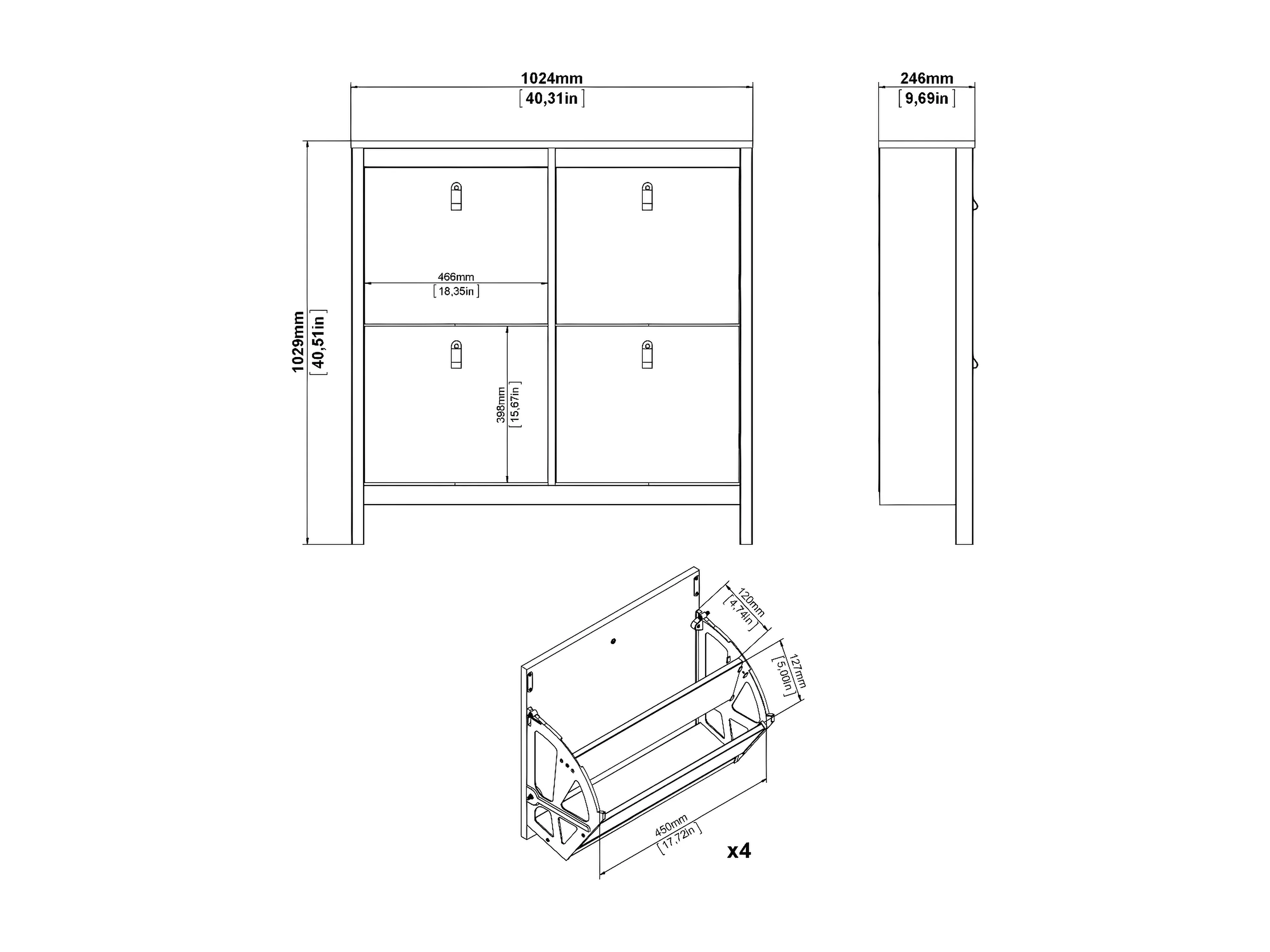 Madrid Schuhschrank 4 Klaptüren weiß.