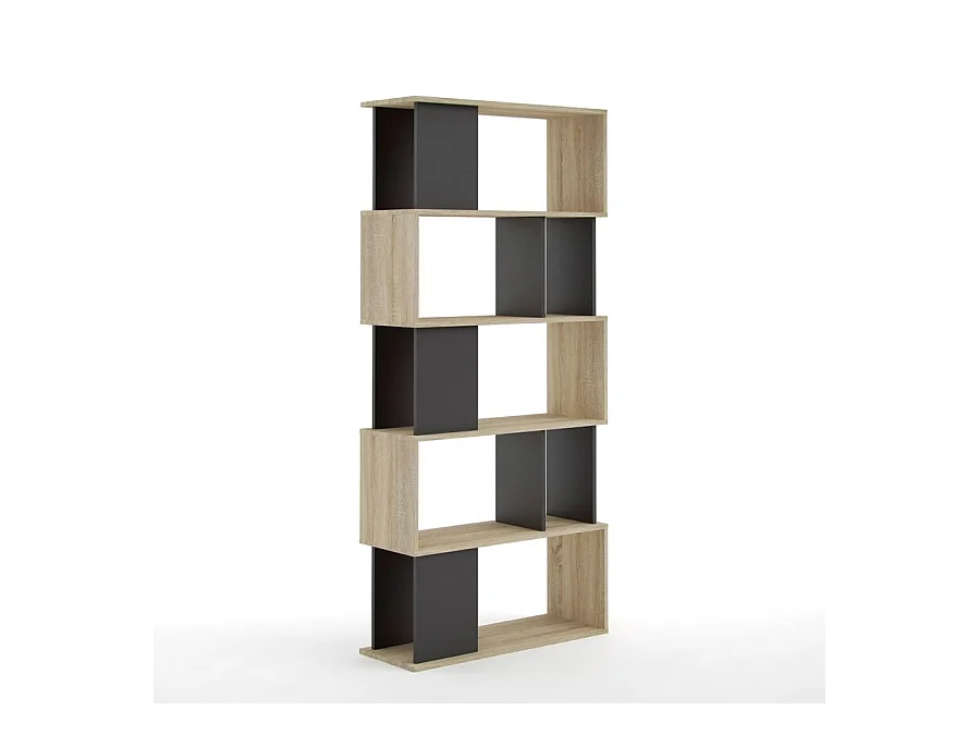 Magda Regal 7 Fächern Eiche Struktur und schwarz.