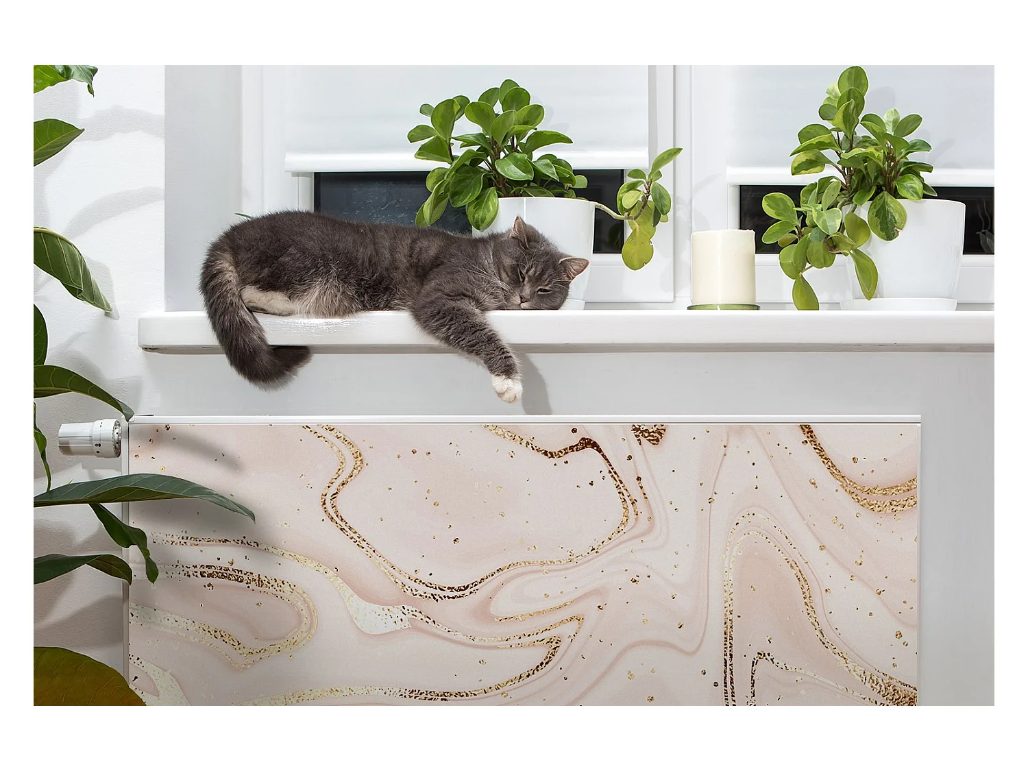 Magnetische Matte für einen Heizkörper - Abstraktion in Roségold 90 x 60 cm, Magnet für einen Heizkörper
