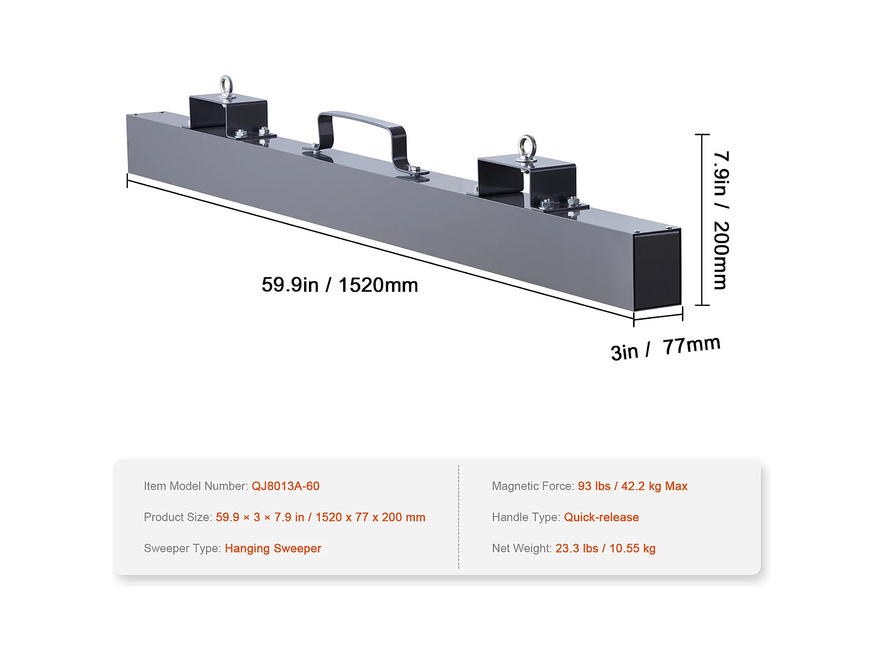 Magnetkehrmaschine, SucceBuy 152 cm Hänge-Magnetkehrwerkzeug, 42,2 kg Hebemagnet für Gabelstapler