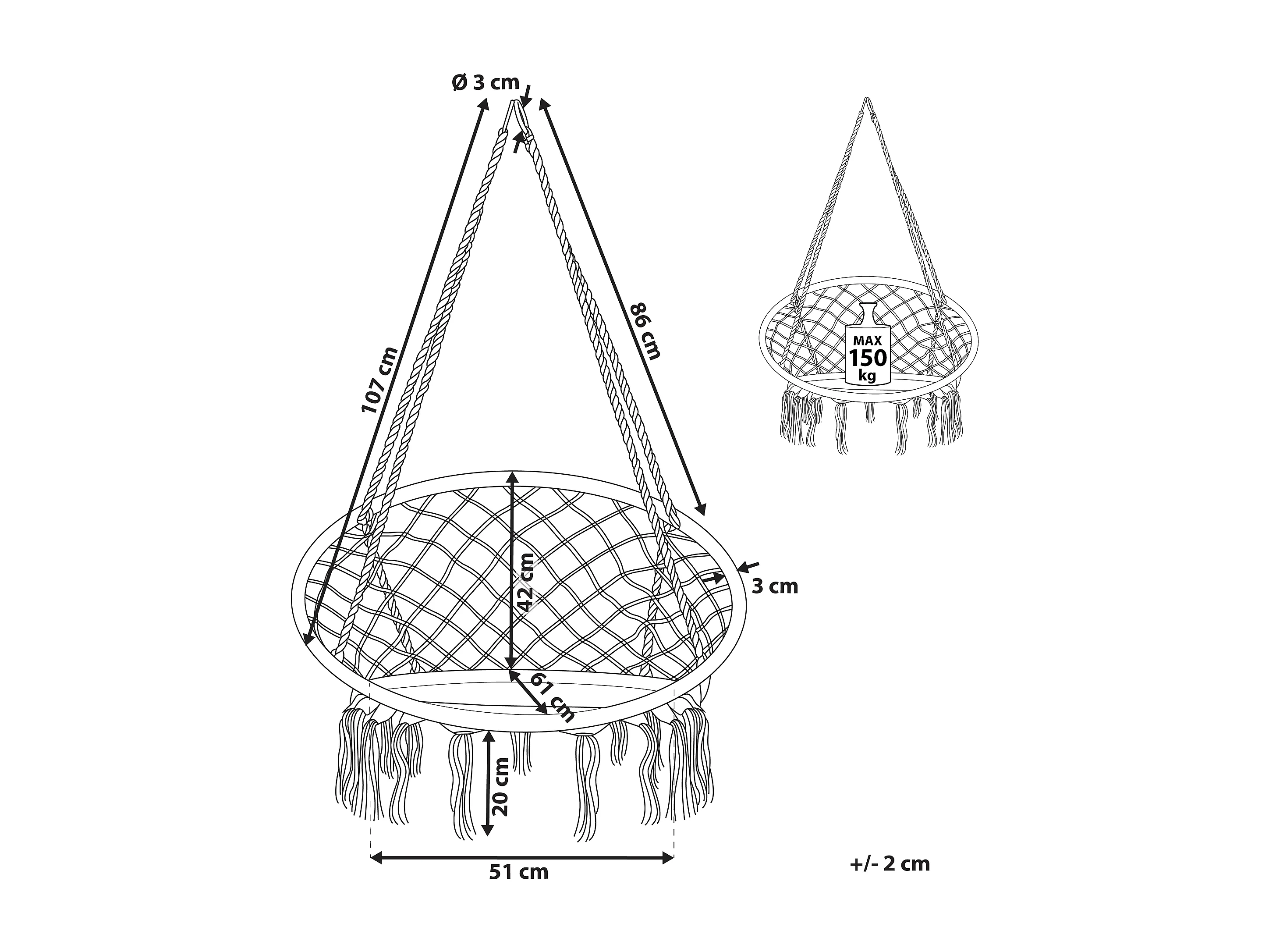 Hängesessel grau Boho-Stil Baumwolle / Polyester Gabella