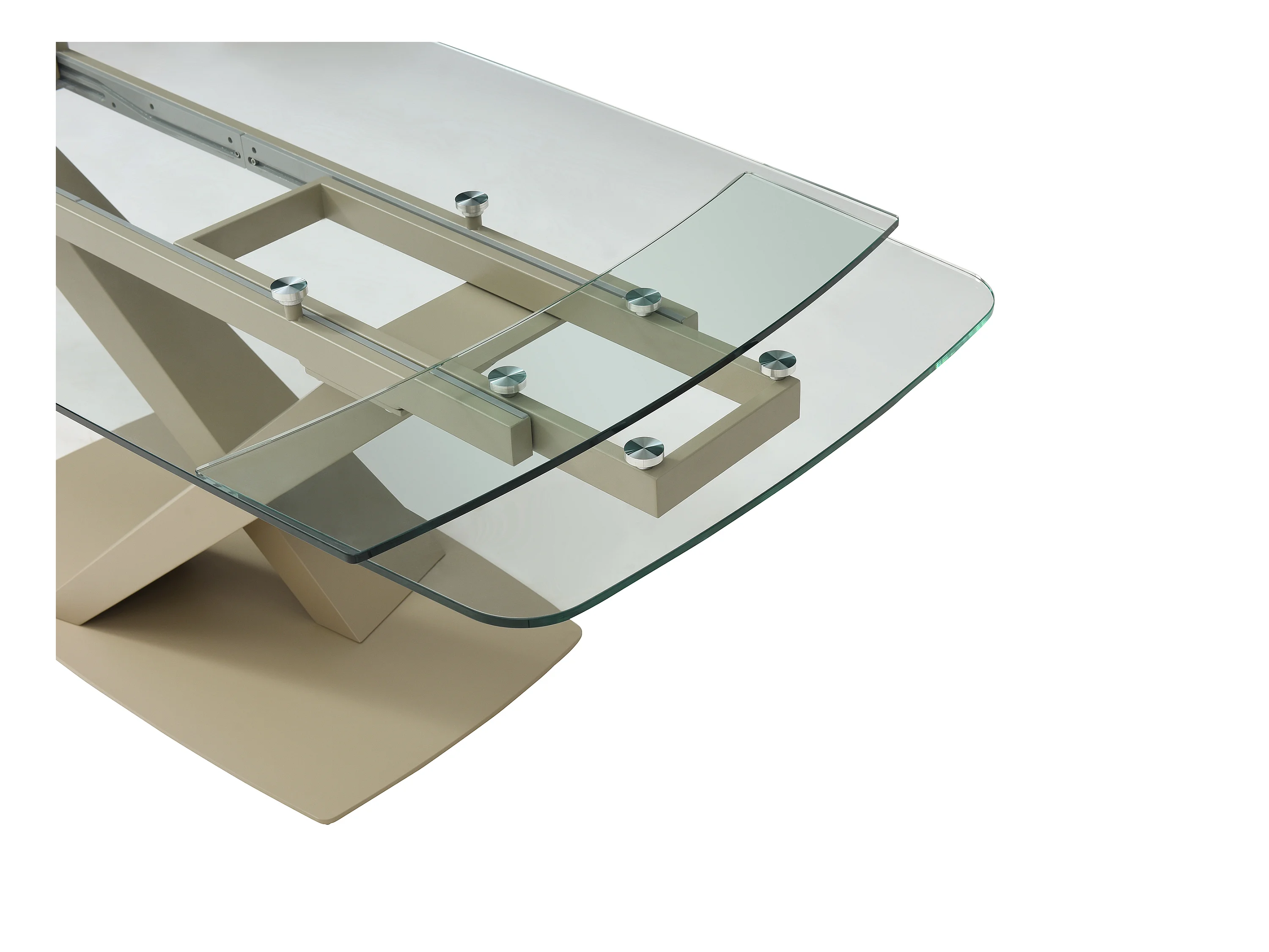 Esstisch ausziehbar - 6 bis 10 Personen - Sicherheitsglas & Metall - Transparent & Beige - MALATA von Maison Céphy