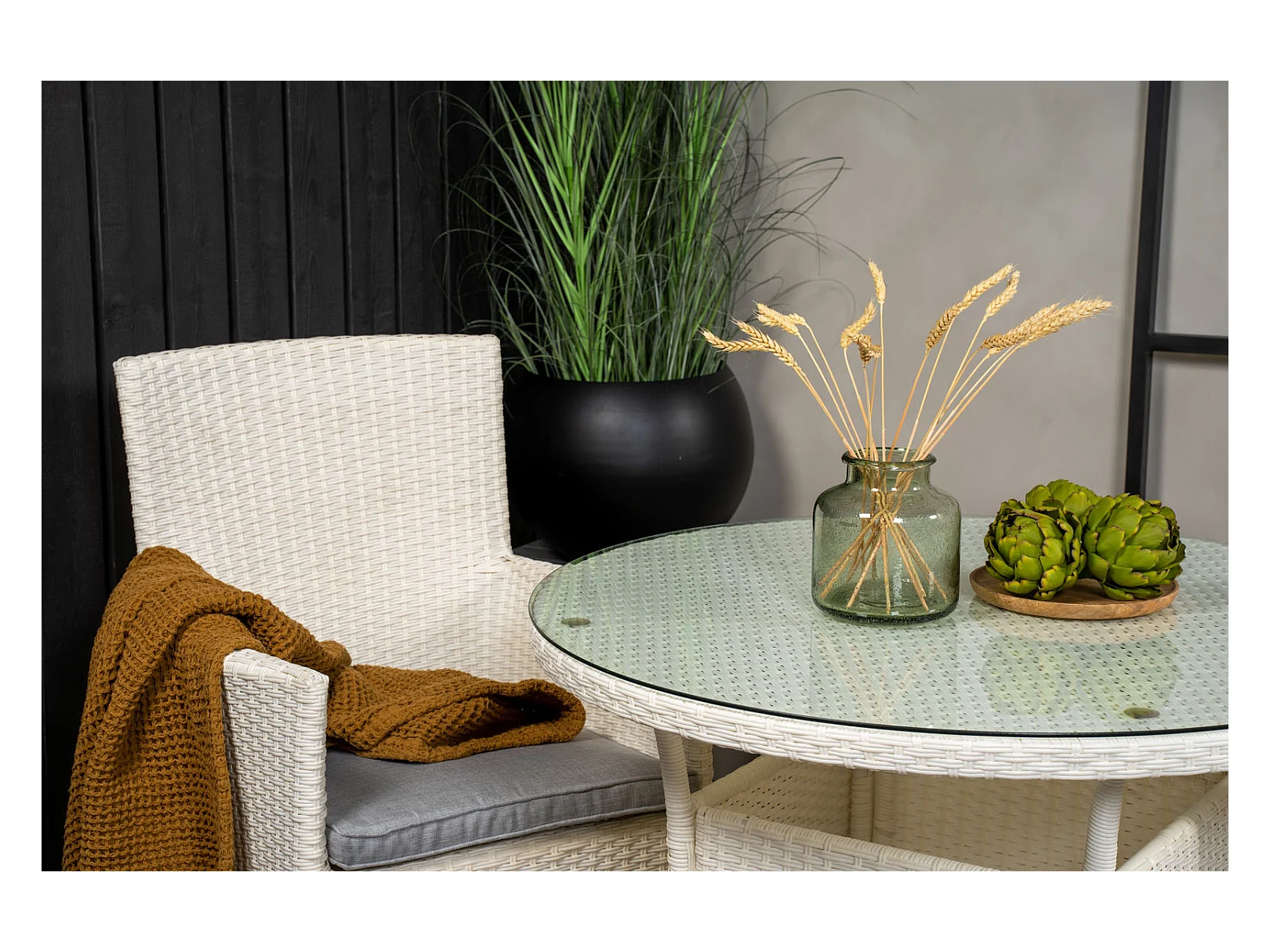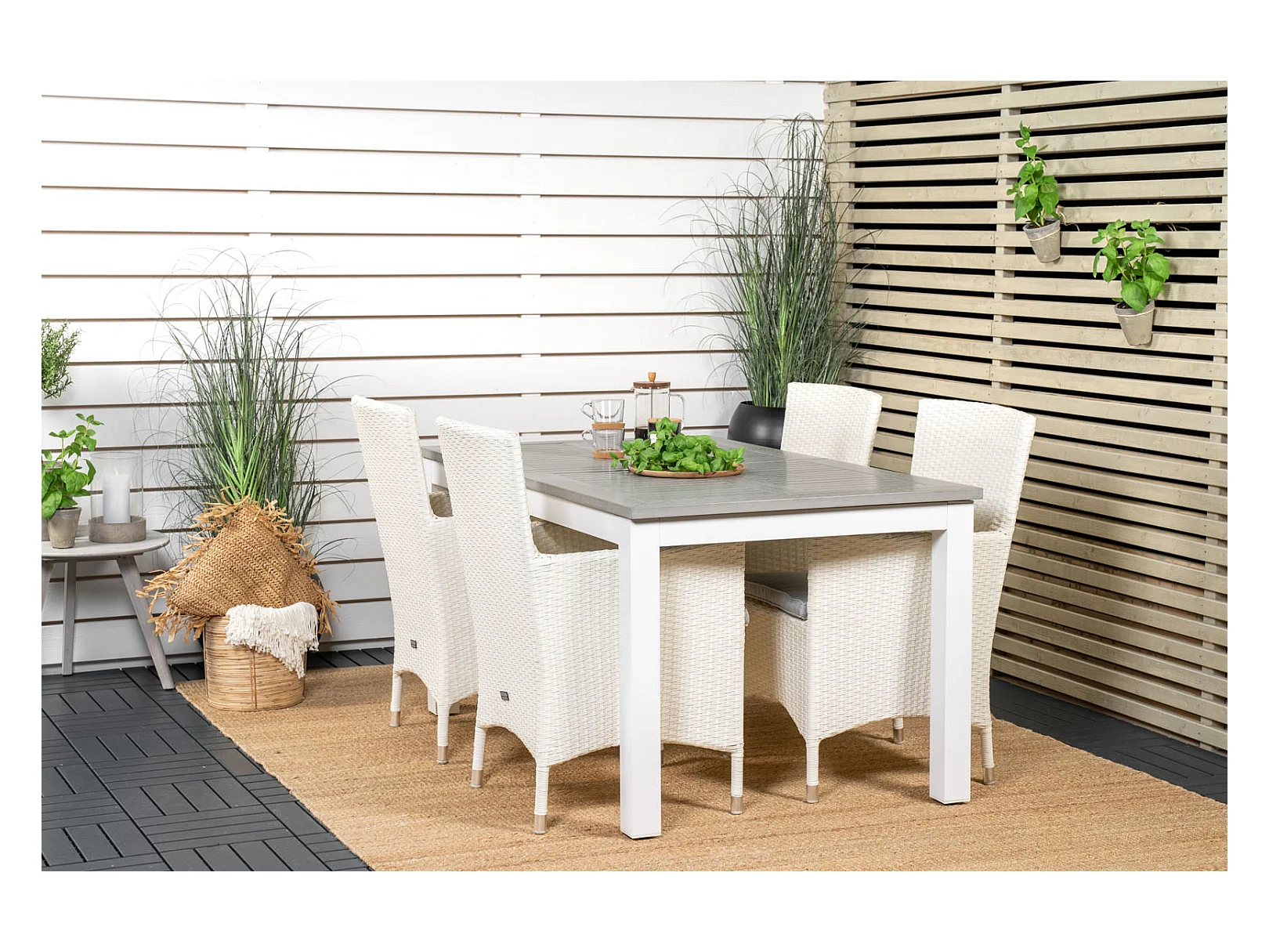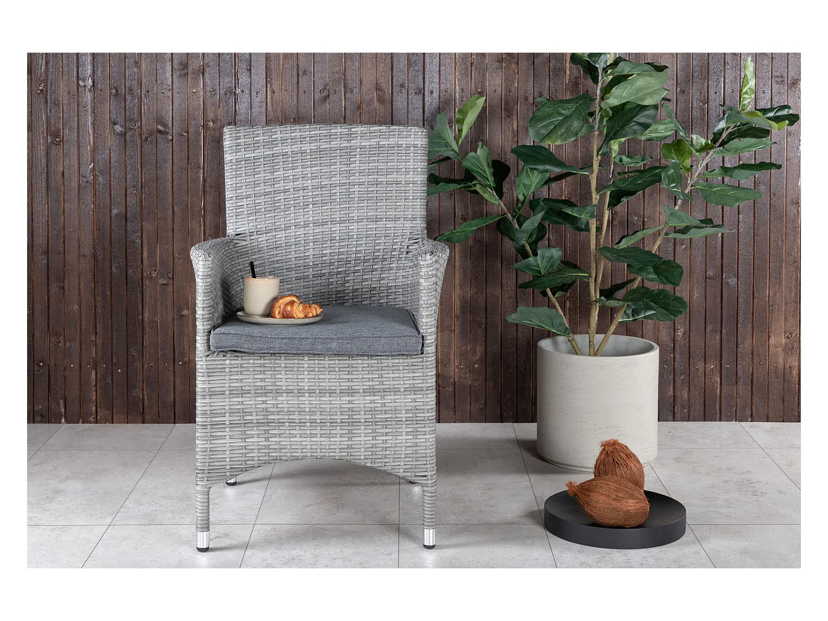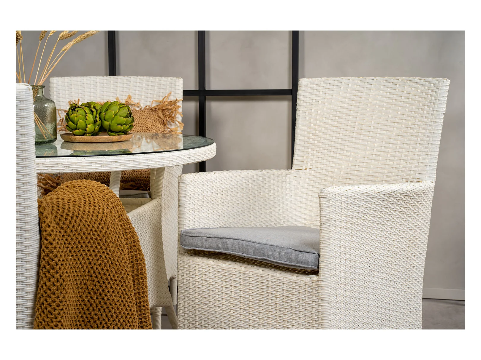 Malin Gartenstuhl mit Armlehnen inkl. Kissen, stapelbar weiß.