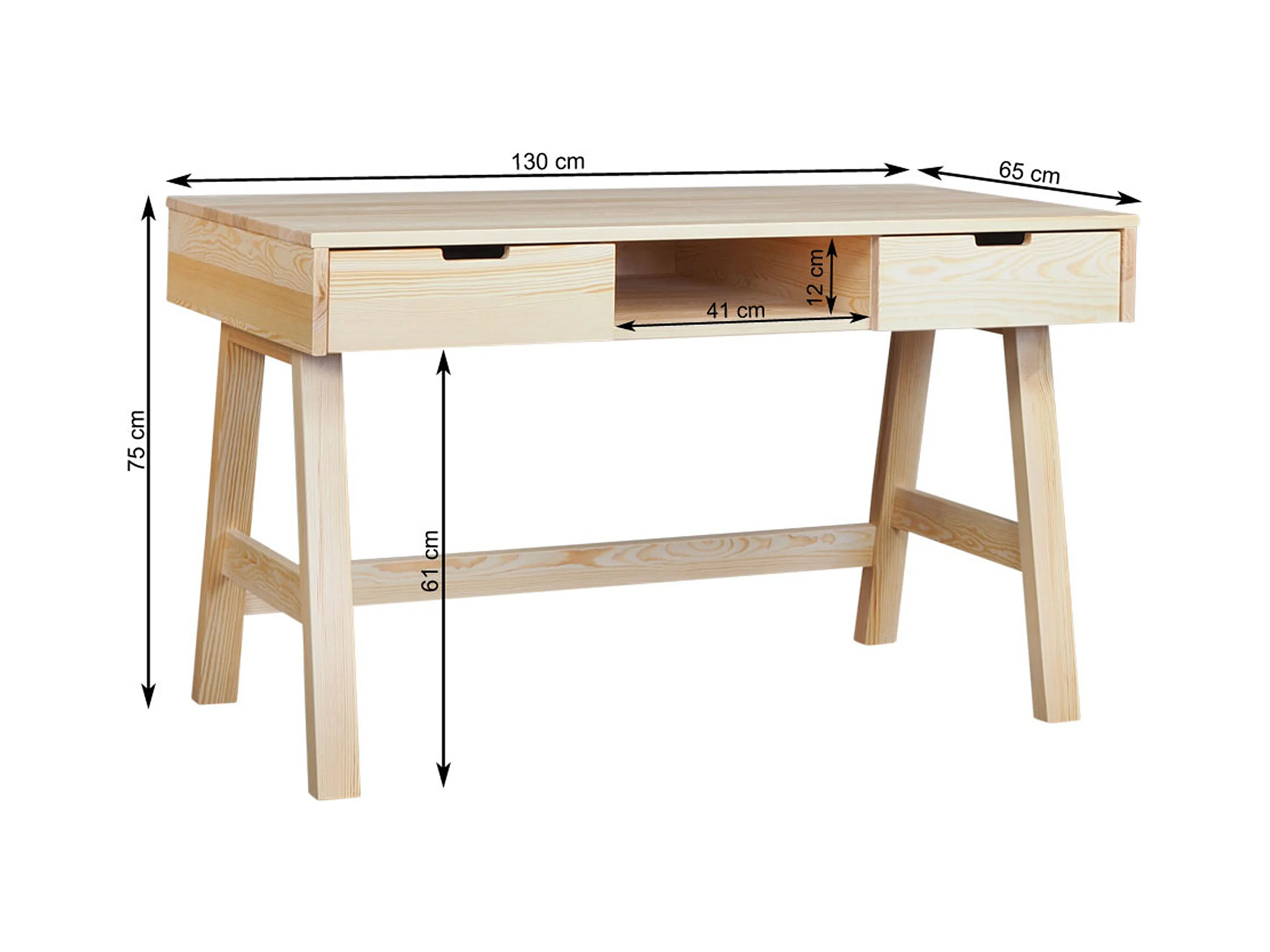 Malmo Holzschreibtisch mit Schubladen, Eiche und weiß gekalkte Farbe