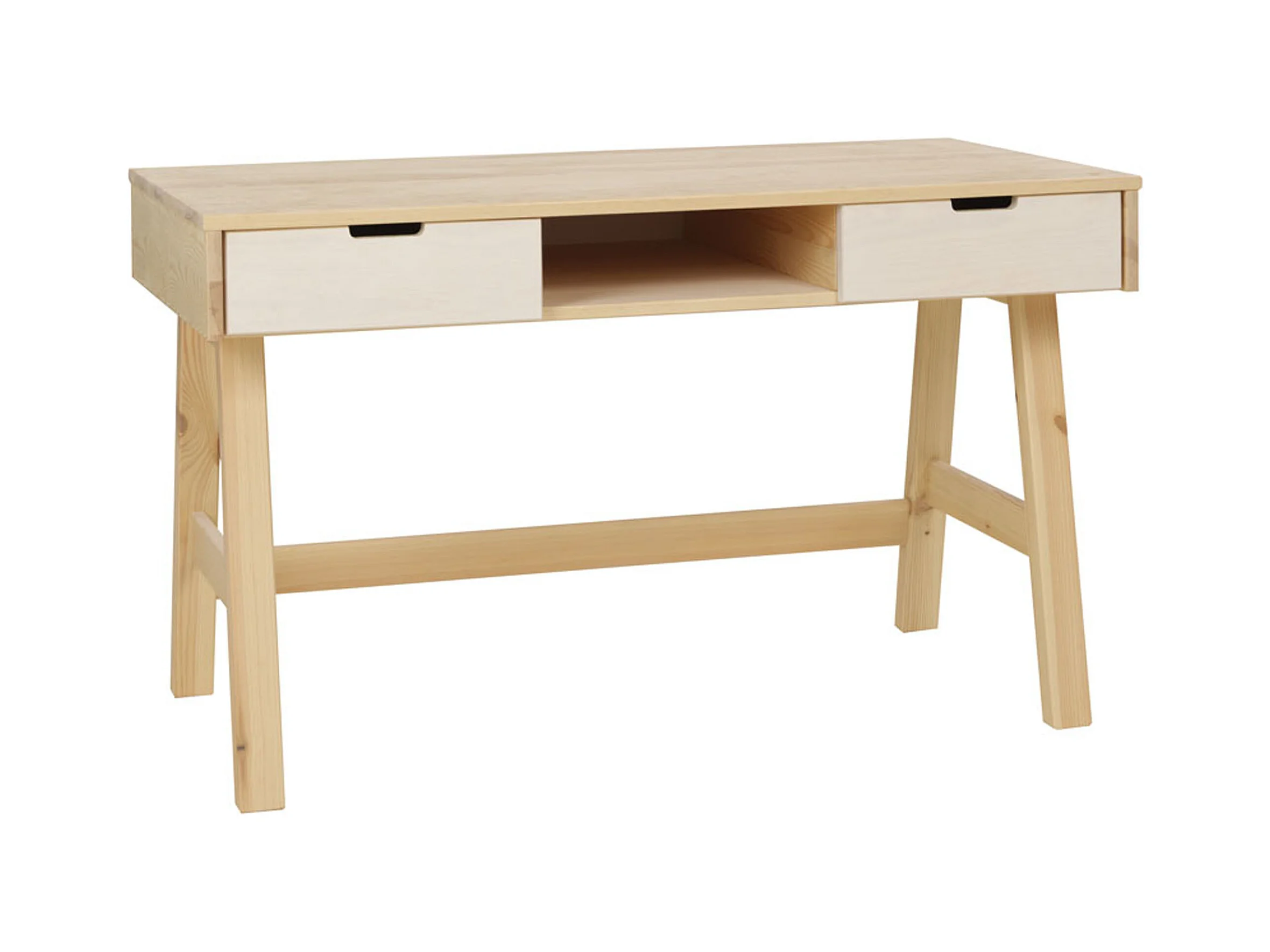 Malmo Holzschreibtisch mit Schubladen, Kiefer und weiß gekalkte Farbe