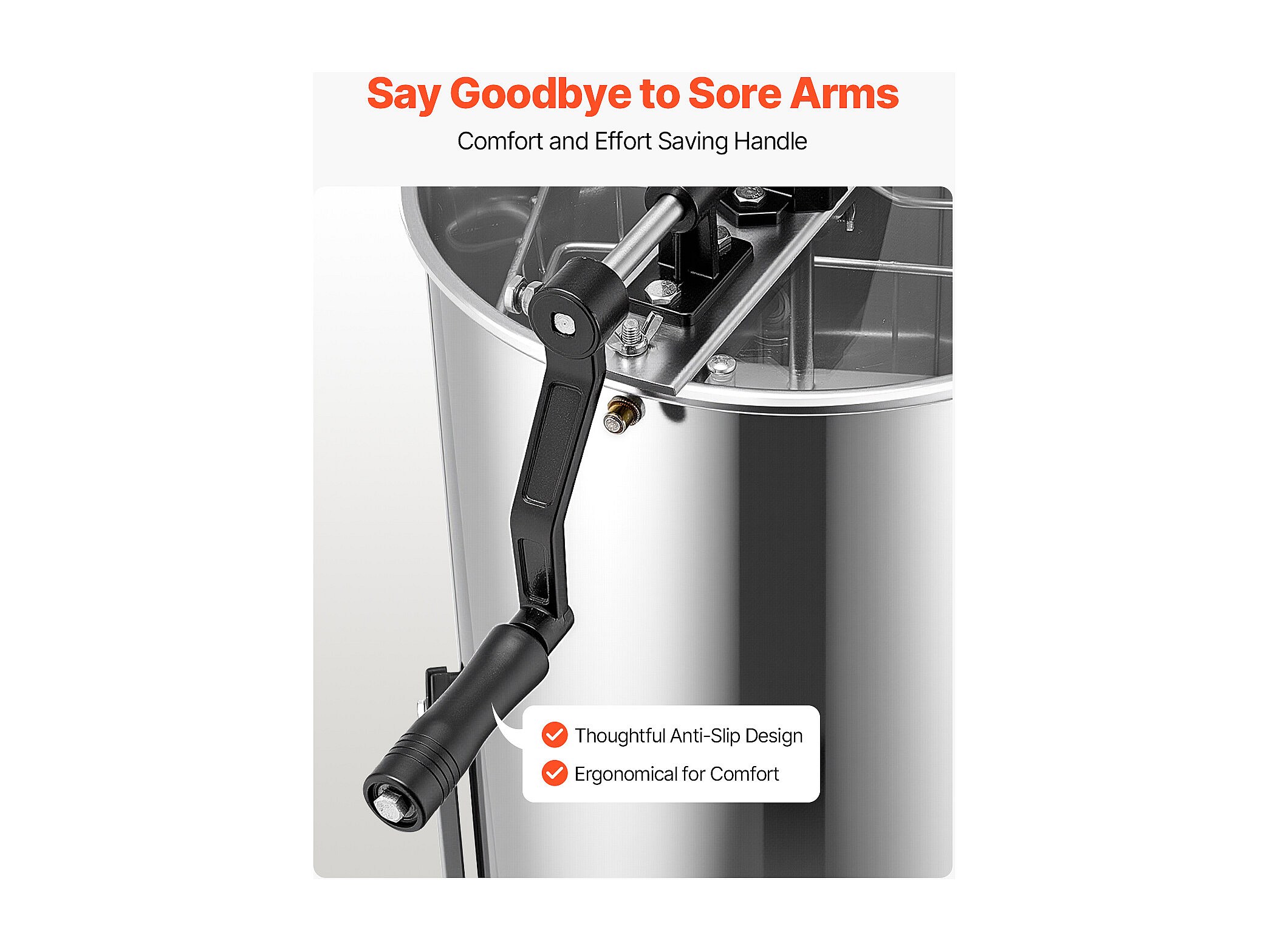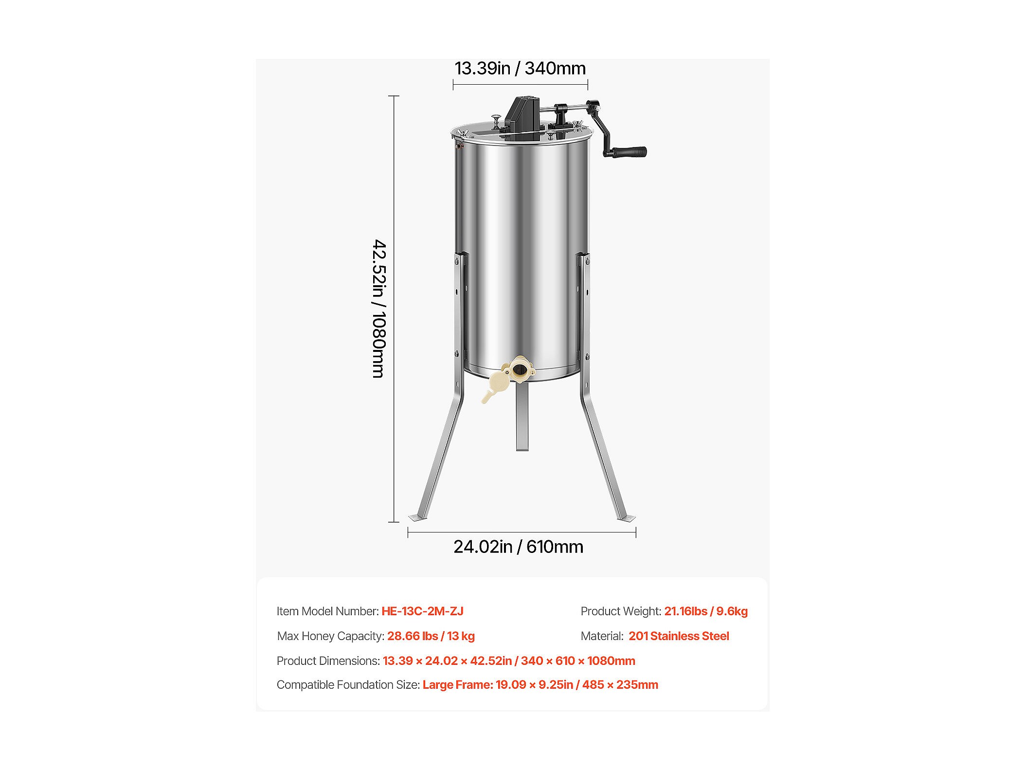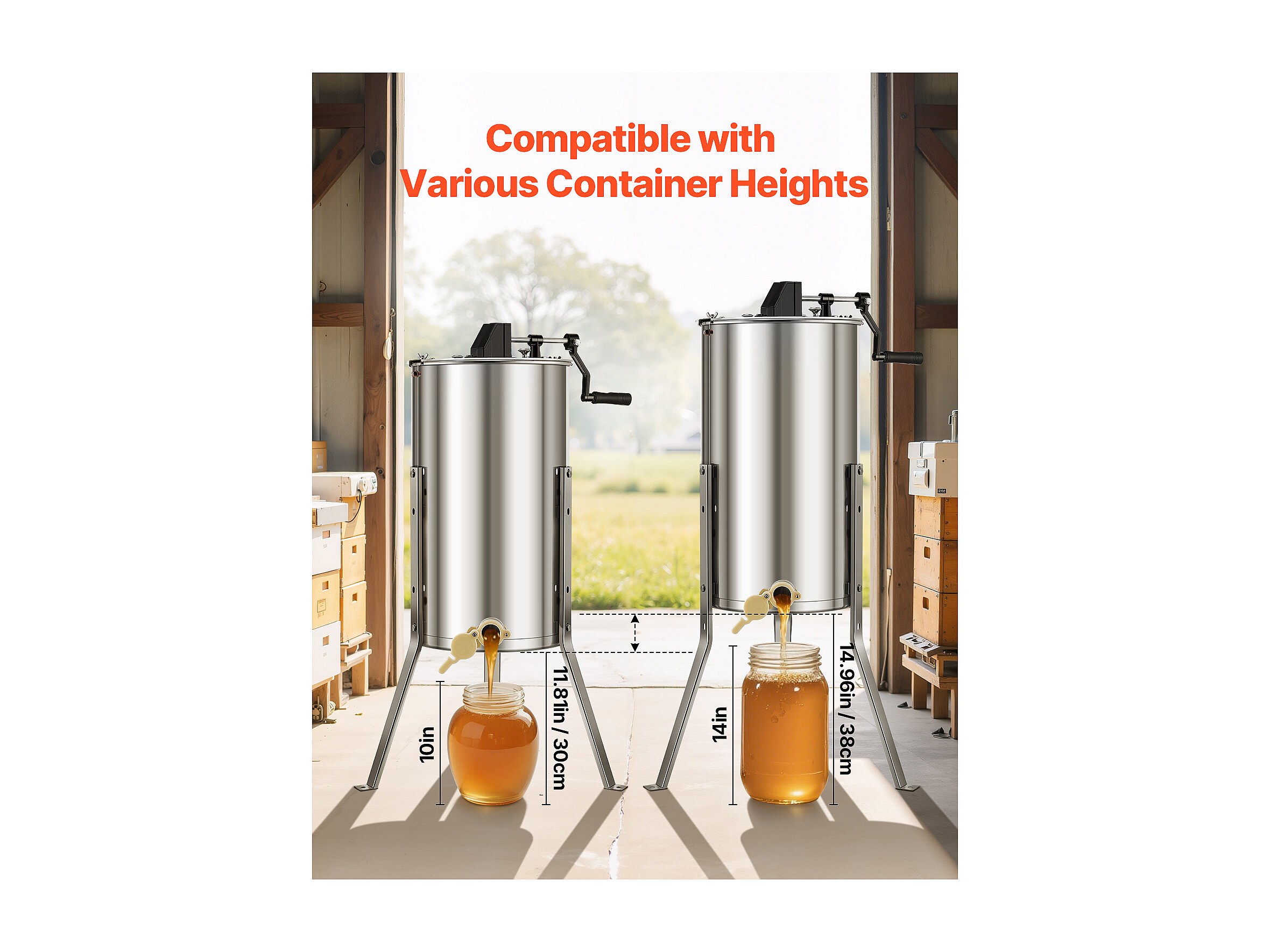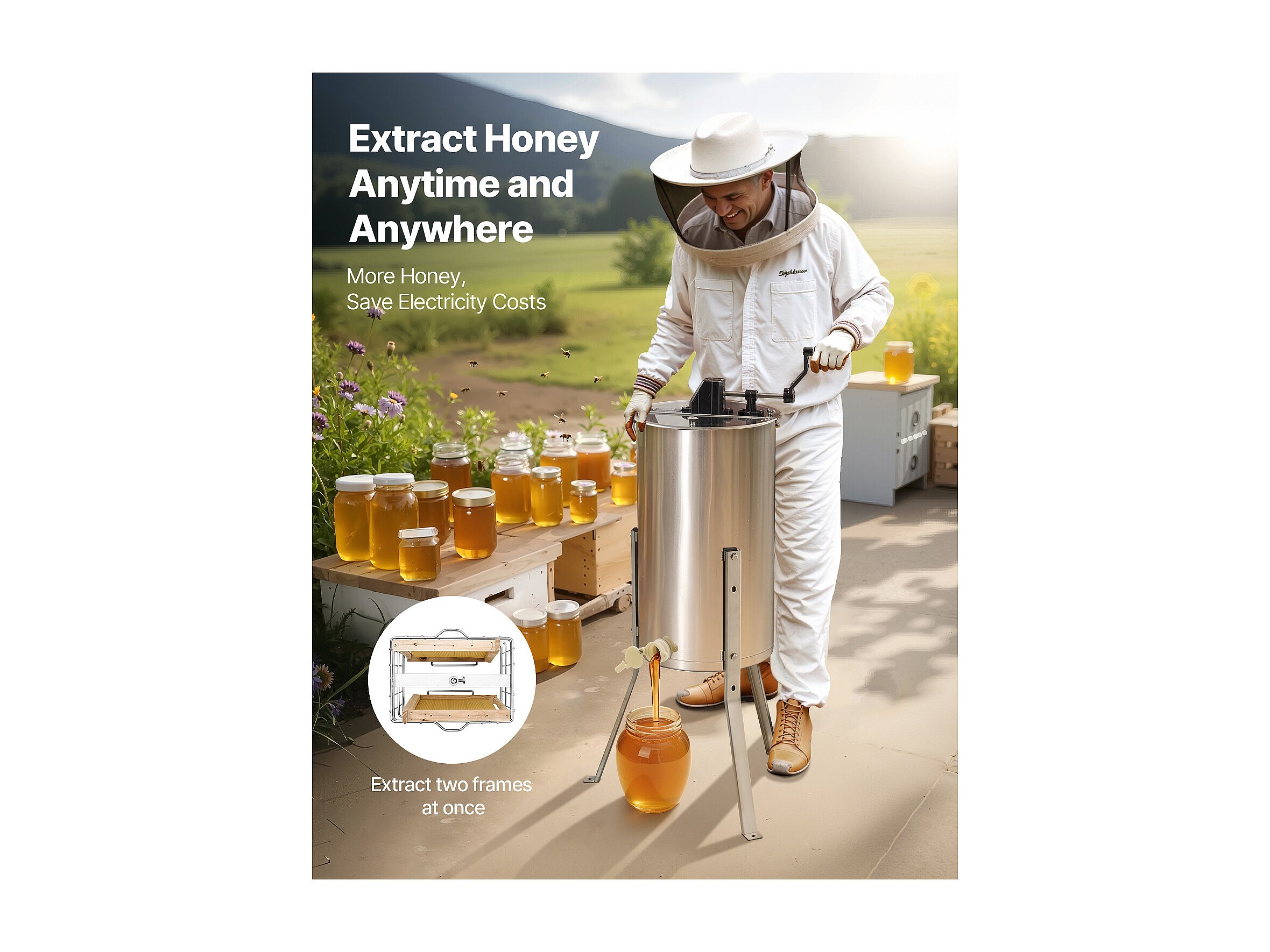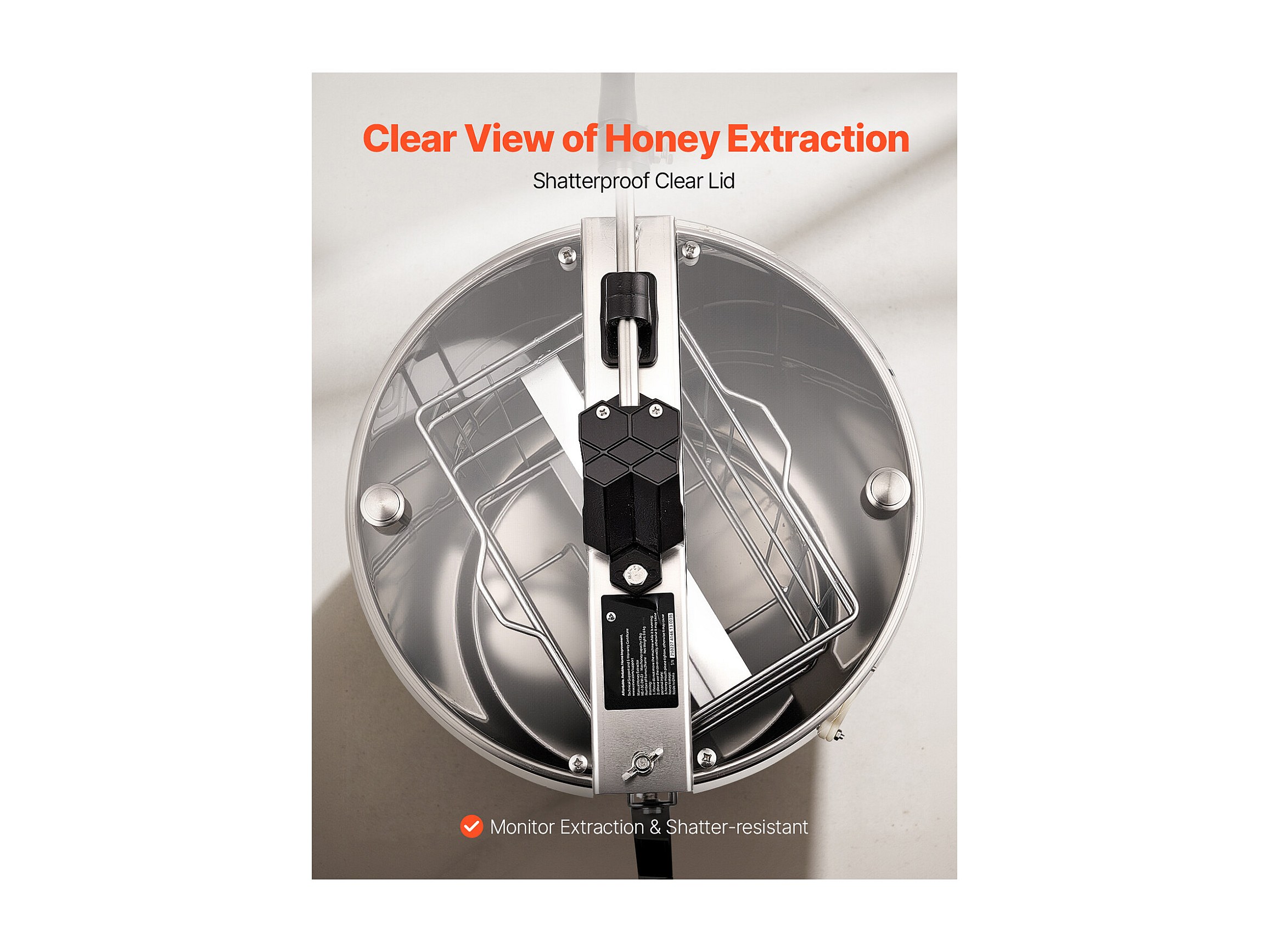 Manueller Honigschleuder mit 2 Rahmen SucceBuy Honigzentrifuge aus Edelstahl mit Transparentem Deckel, Höhenverstellbarer Halterung zur Honigextraktion