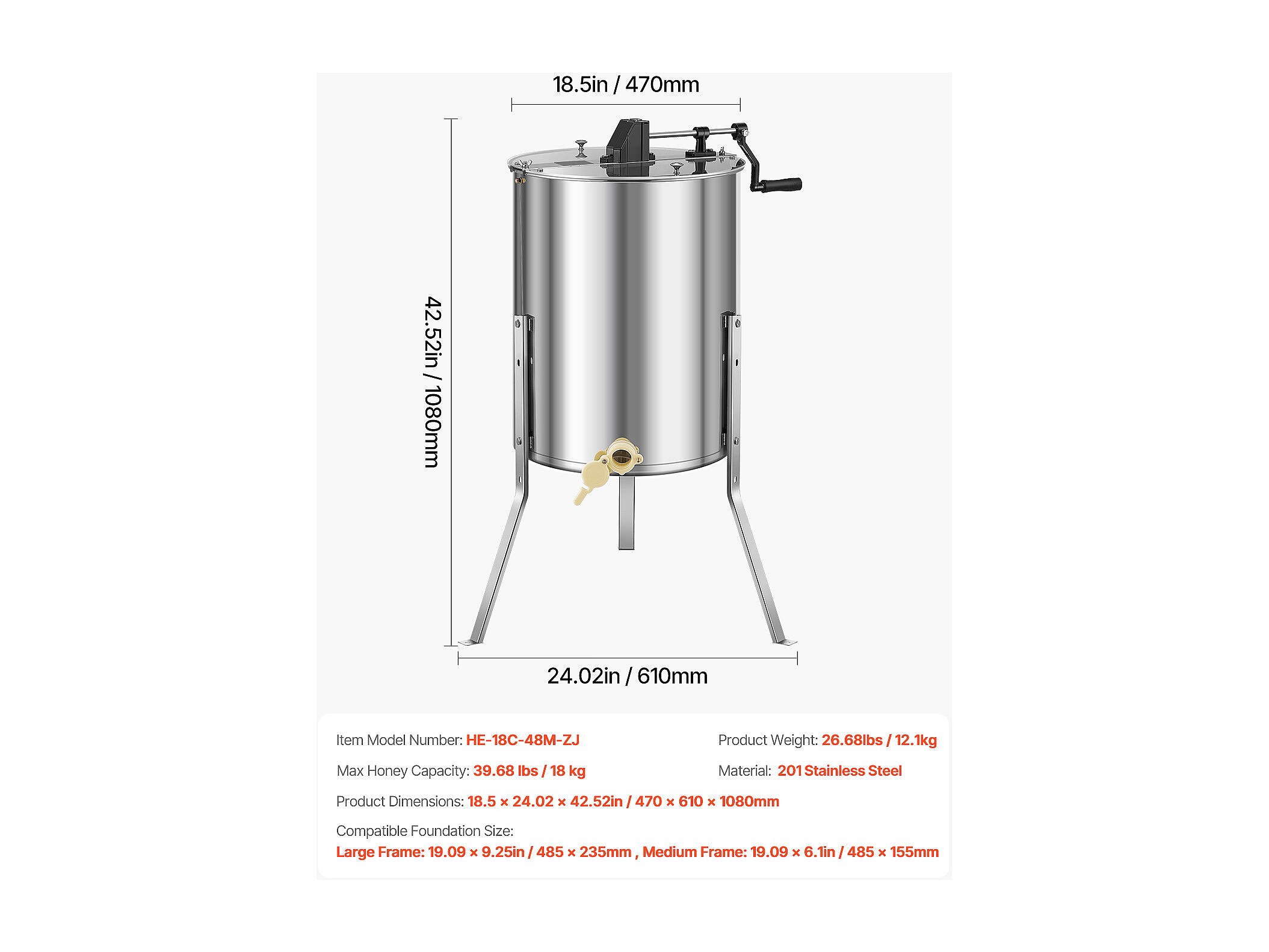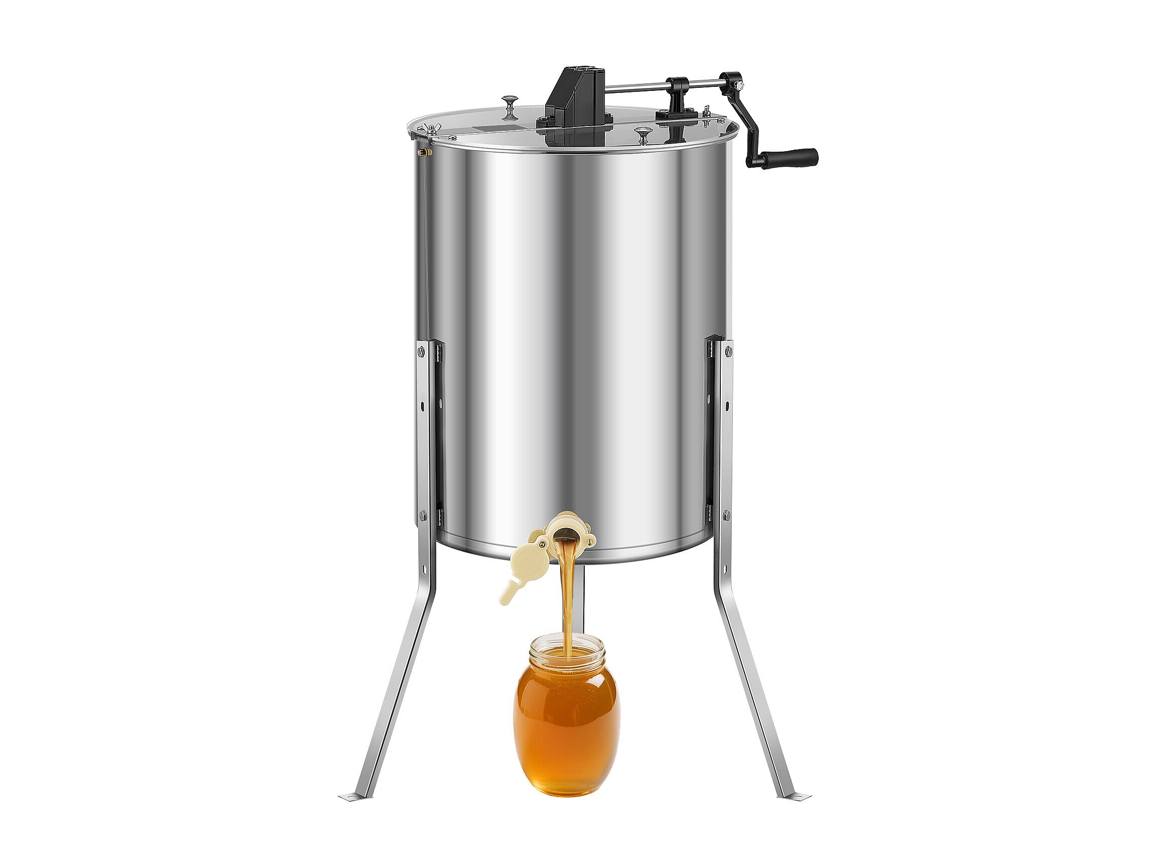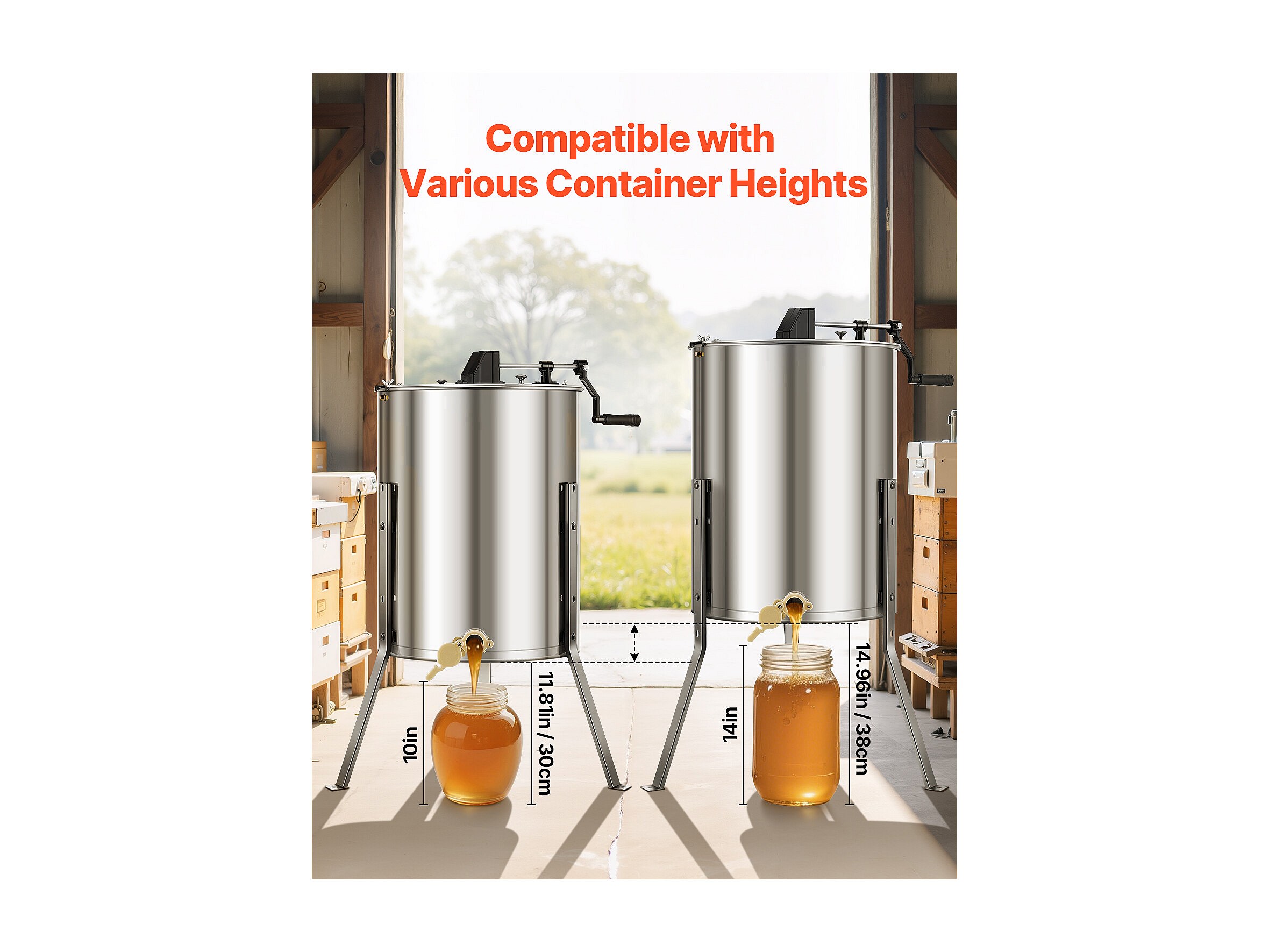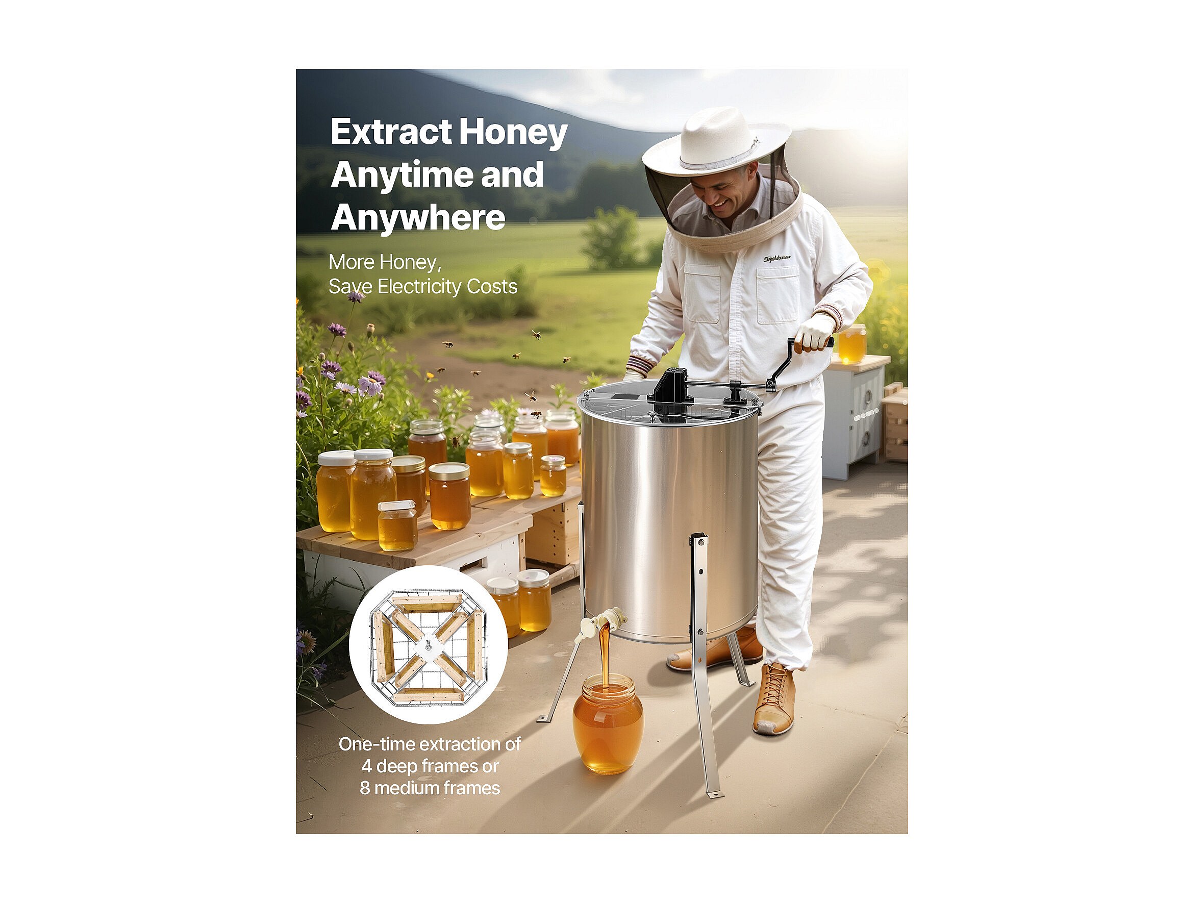 Manueller Honigschleuder mit 4/8 Rahmen SucceBuy Honigseparator aus Edelstahl mit Transparentem Deckel, Höhenverstellbarer Ständer für Honigproduktion