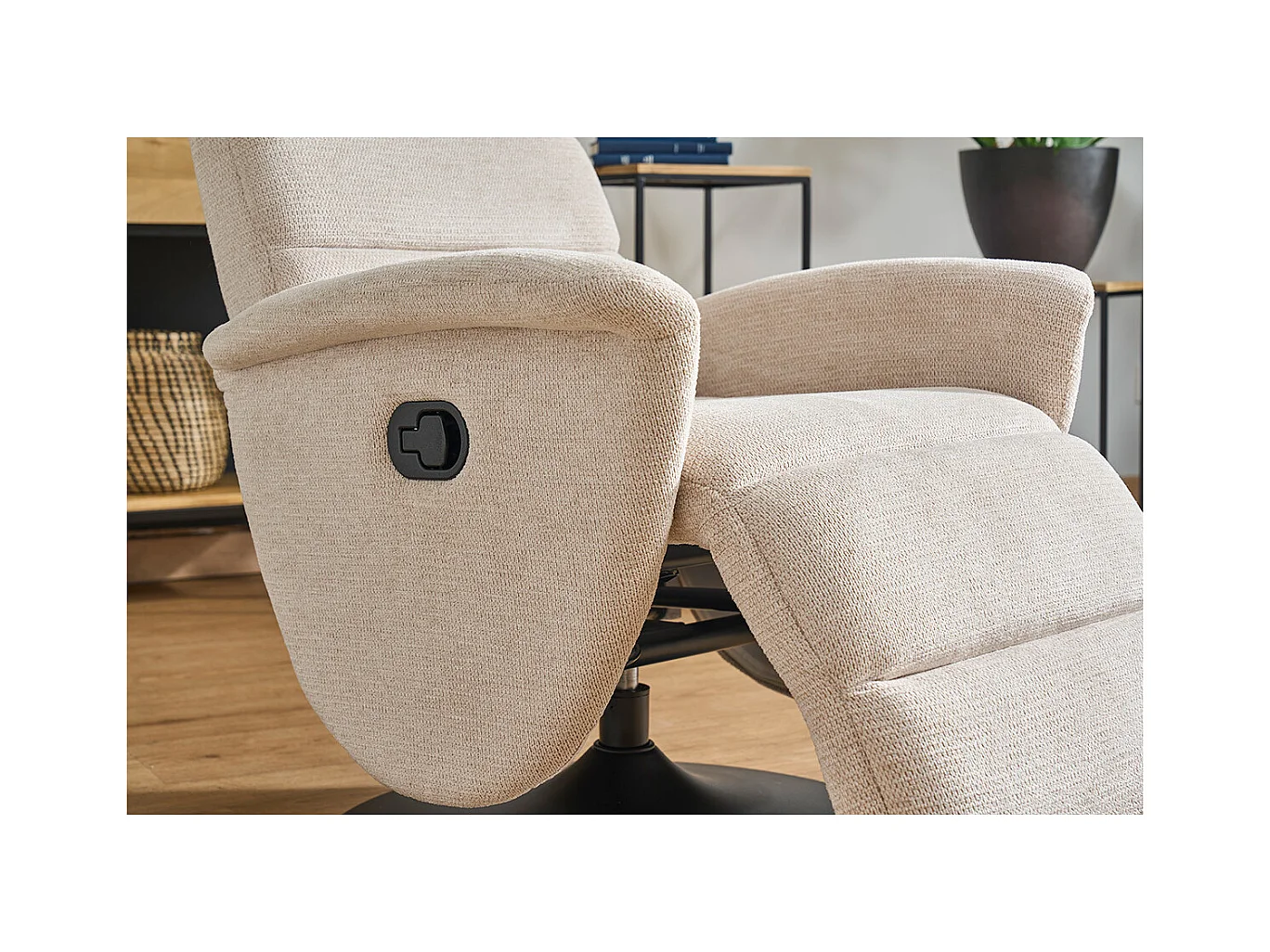 Manueller Relax-Schwenksessel aus beigem Chenille-Gewebe NELSON