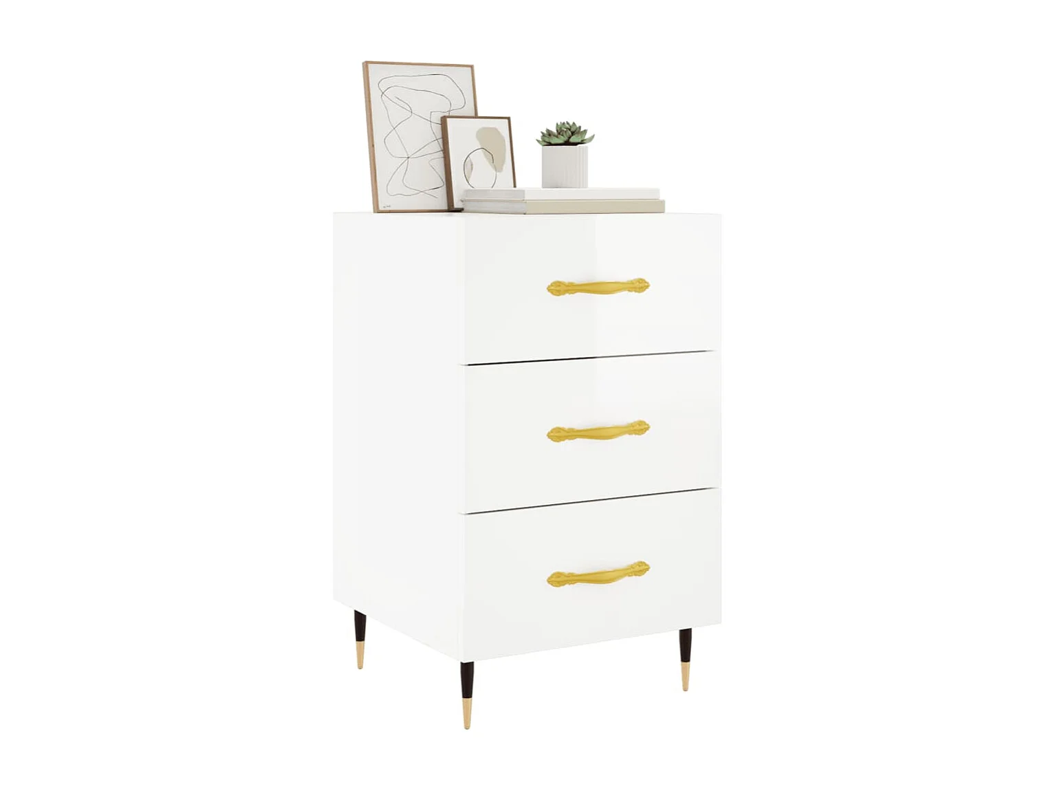 Maria Elise Nachttisch Hochglanz-Weiß 40x40x66 cm Holzwerkstoff