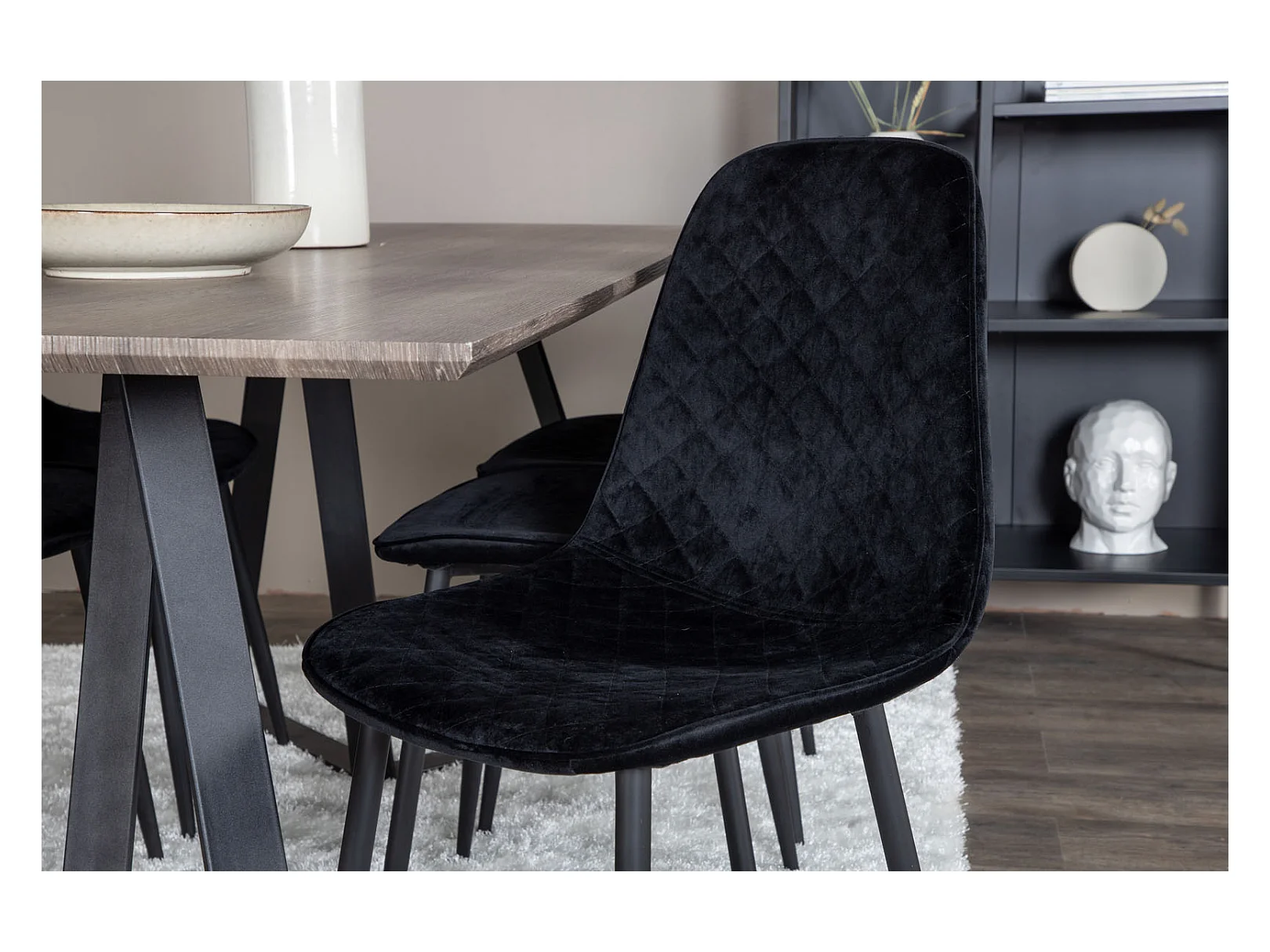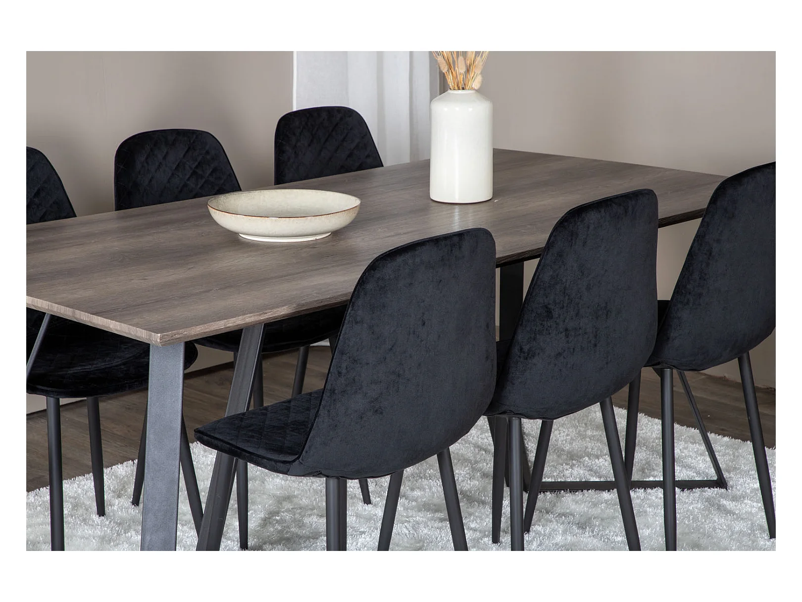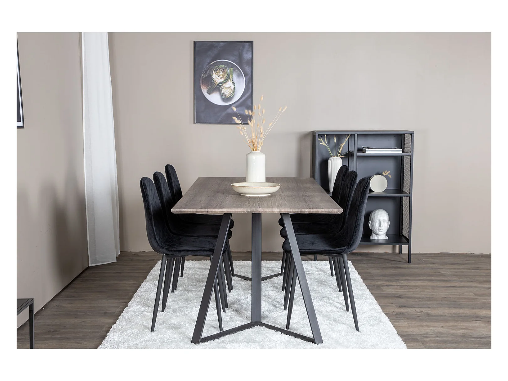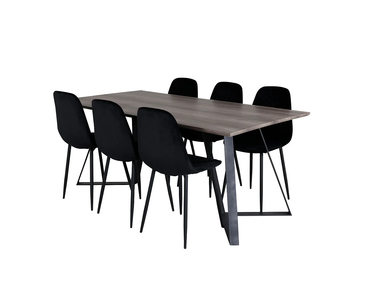 MarinaGRBL Essgruppe Esstisch El Holz dekor grau und 6 Polar Diamond Esszimmerstühle Velour schwarz.