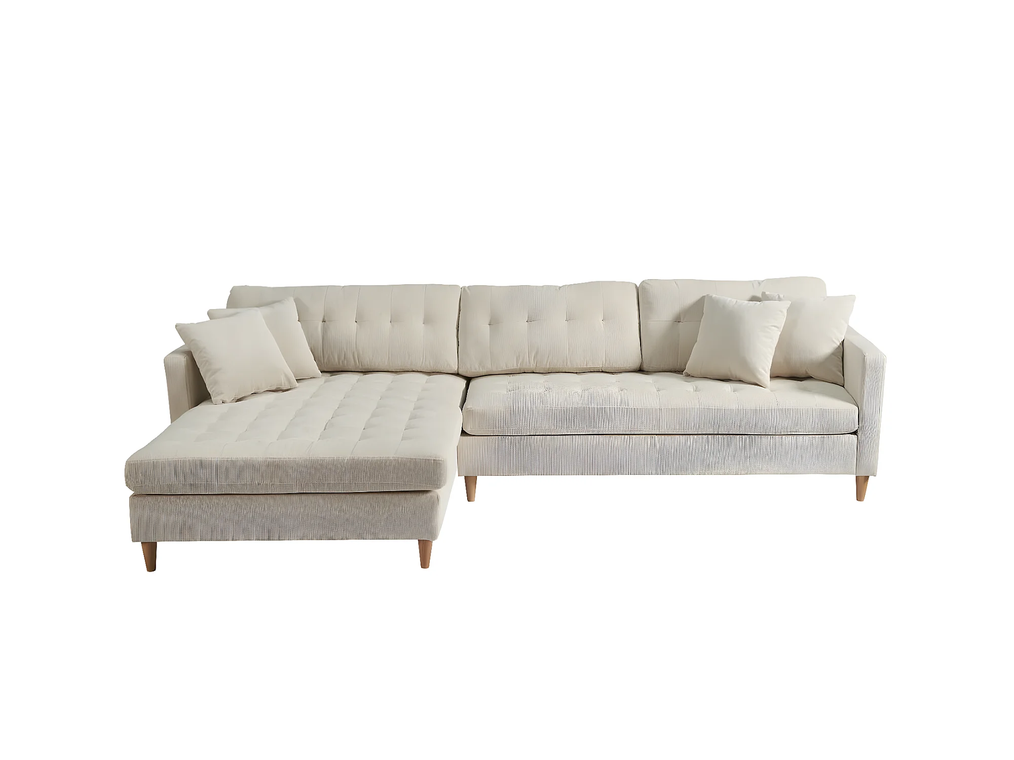 Marino Deluxe Chaiselongsofa rechts oder links gewendet mit Kissen Samt sandfarben.