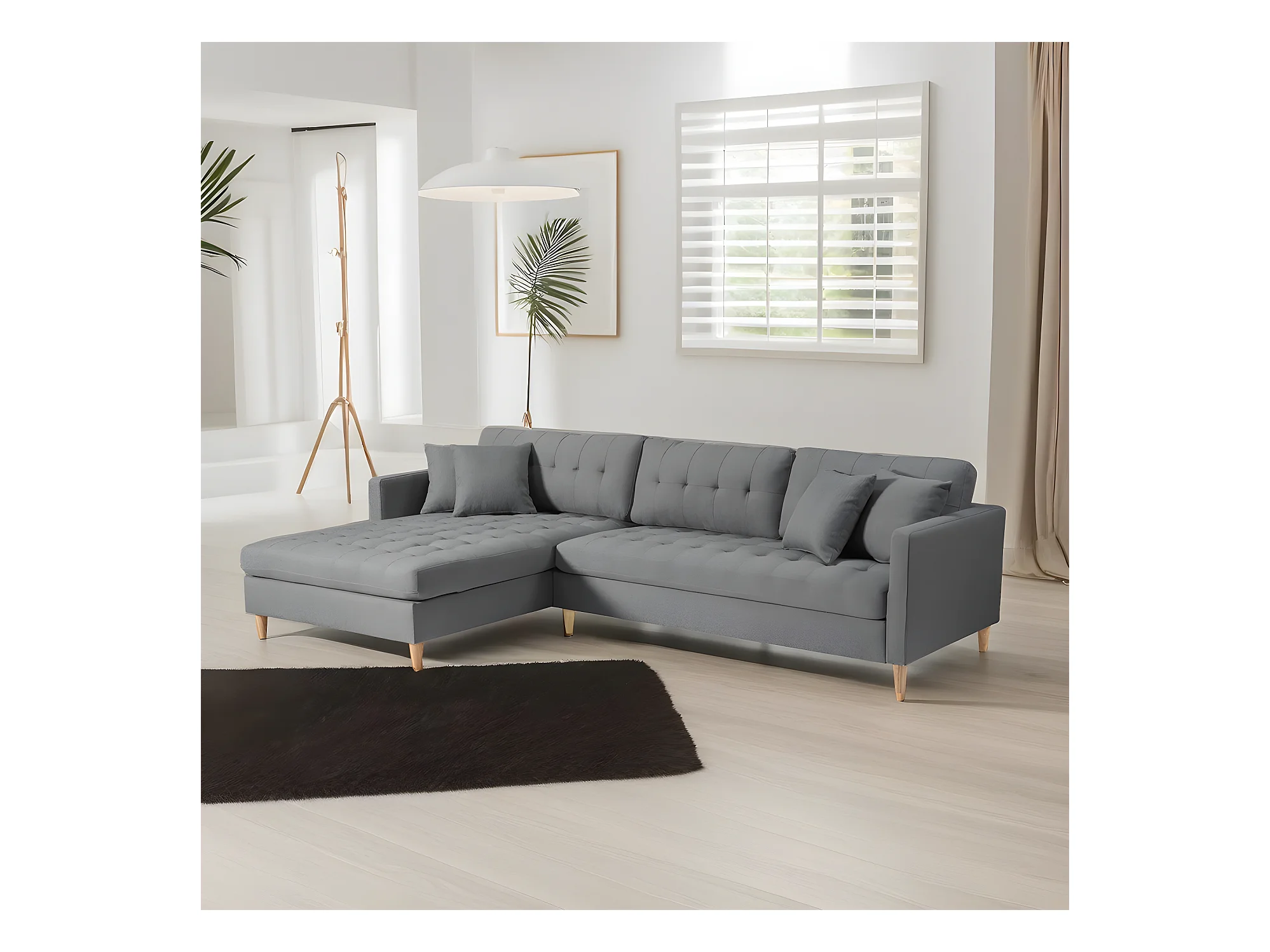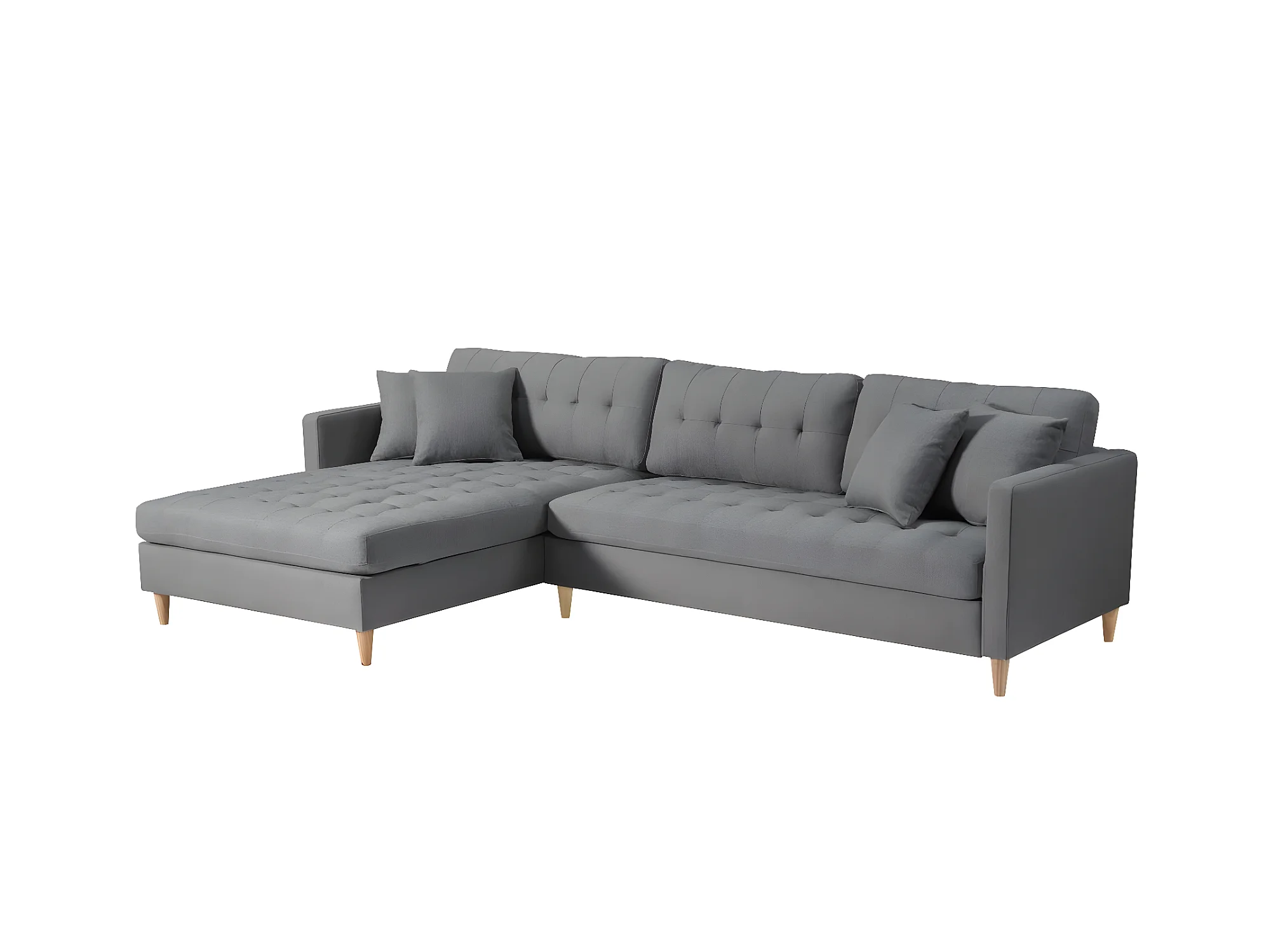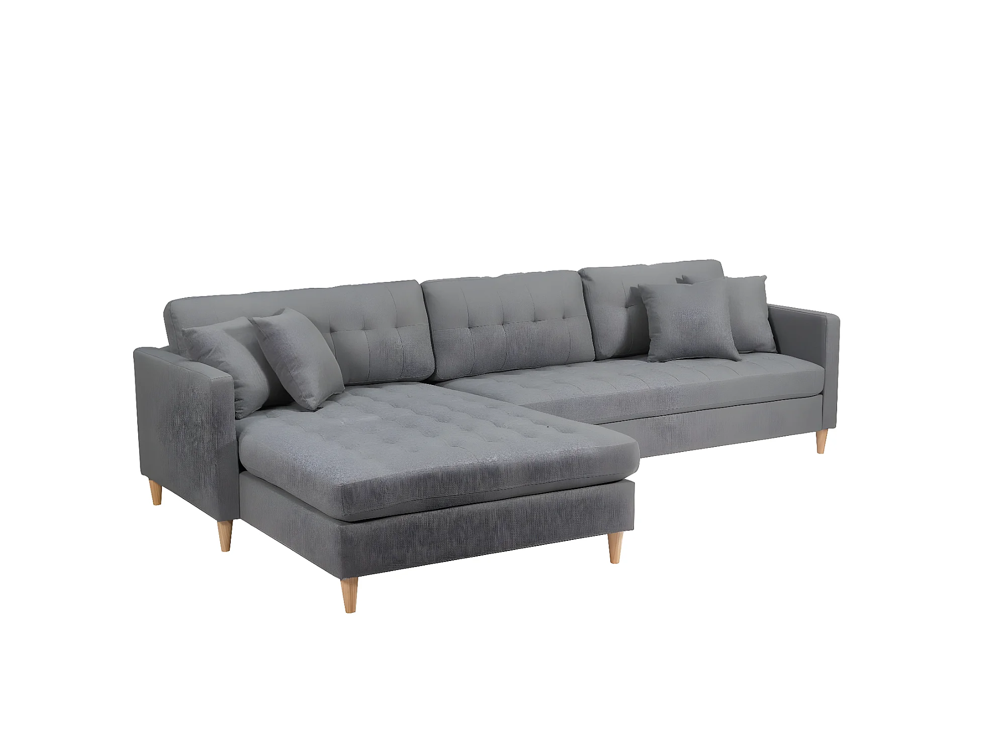 Marino Deluxe Chaiselongsofa rechts oder links gewendet mit Kissen Stoff grau.