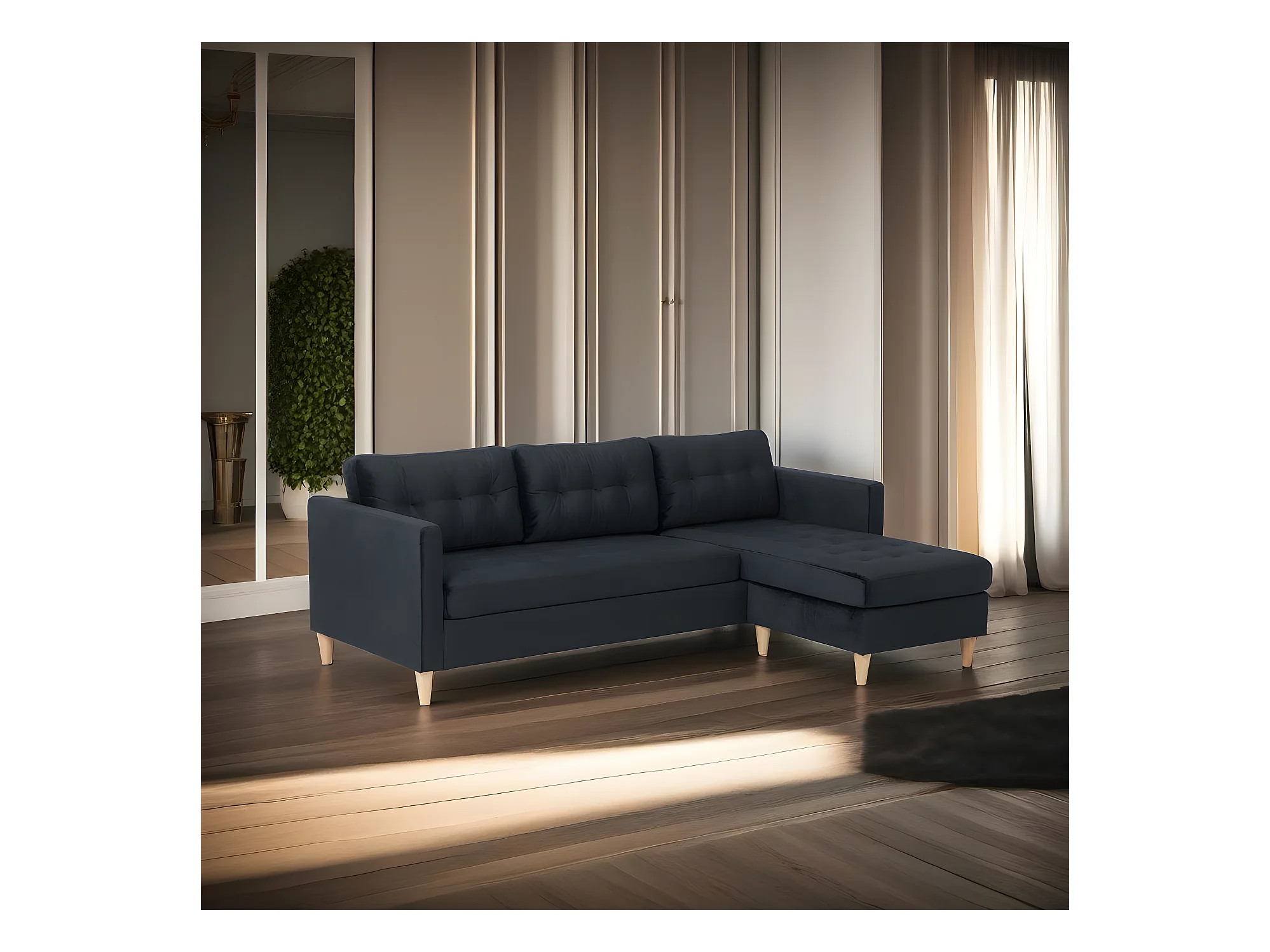 Marino Sofa BA4, Chaiselongue rechts oder links gewendet in Velour schwarz.
