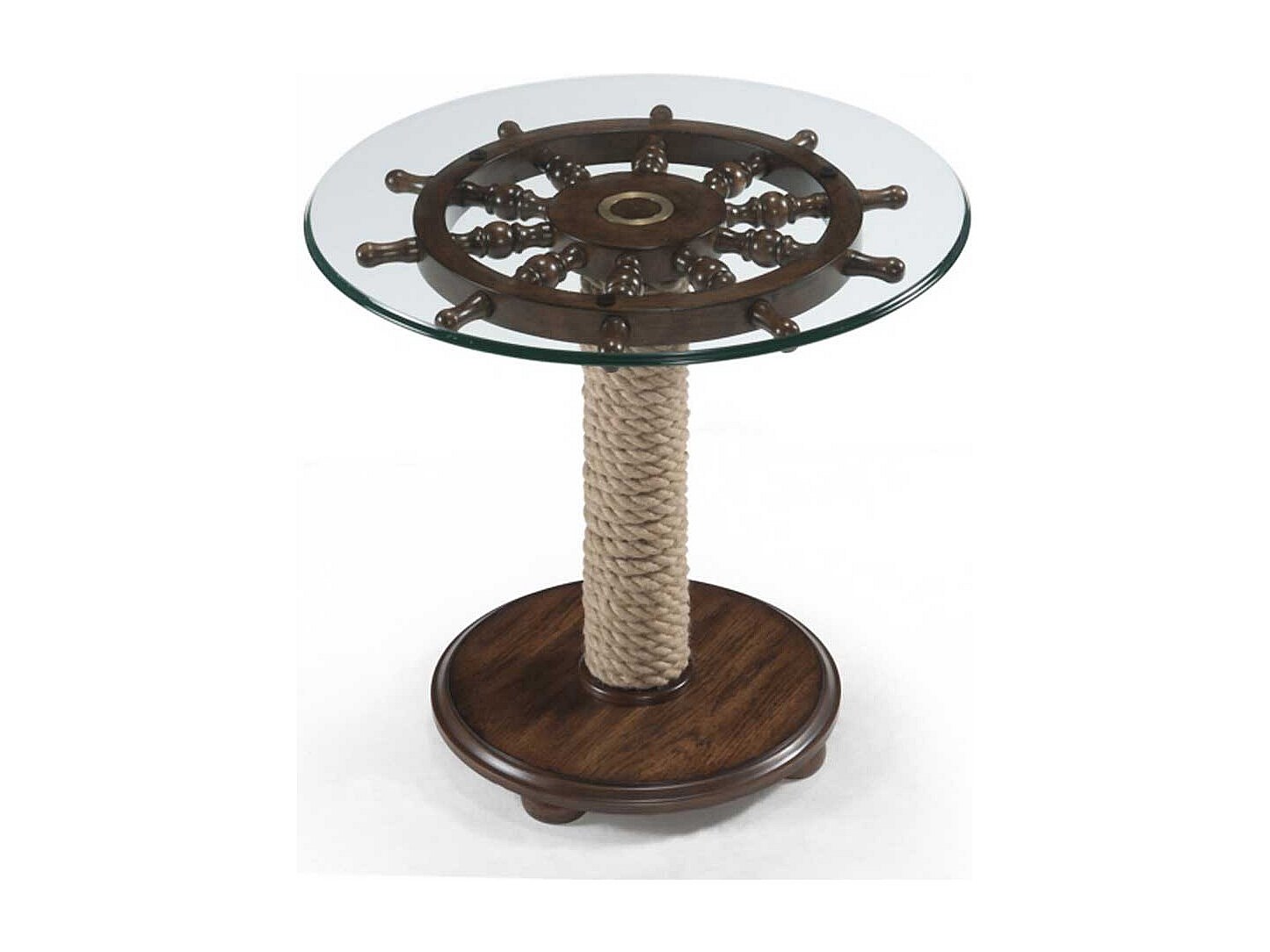 Maritimer Wohnzimmertisch in Nussbaumfarben Glasplatte