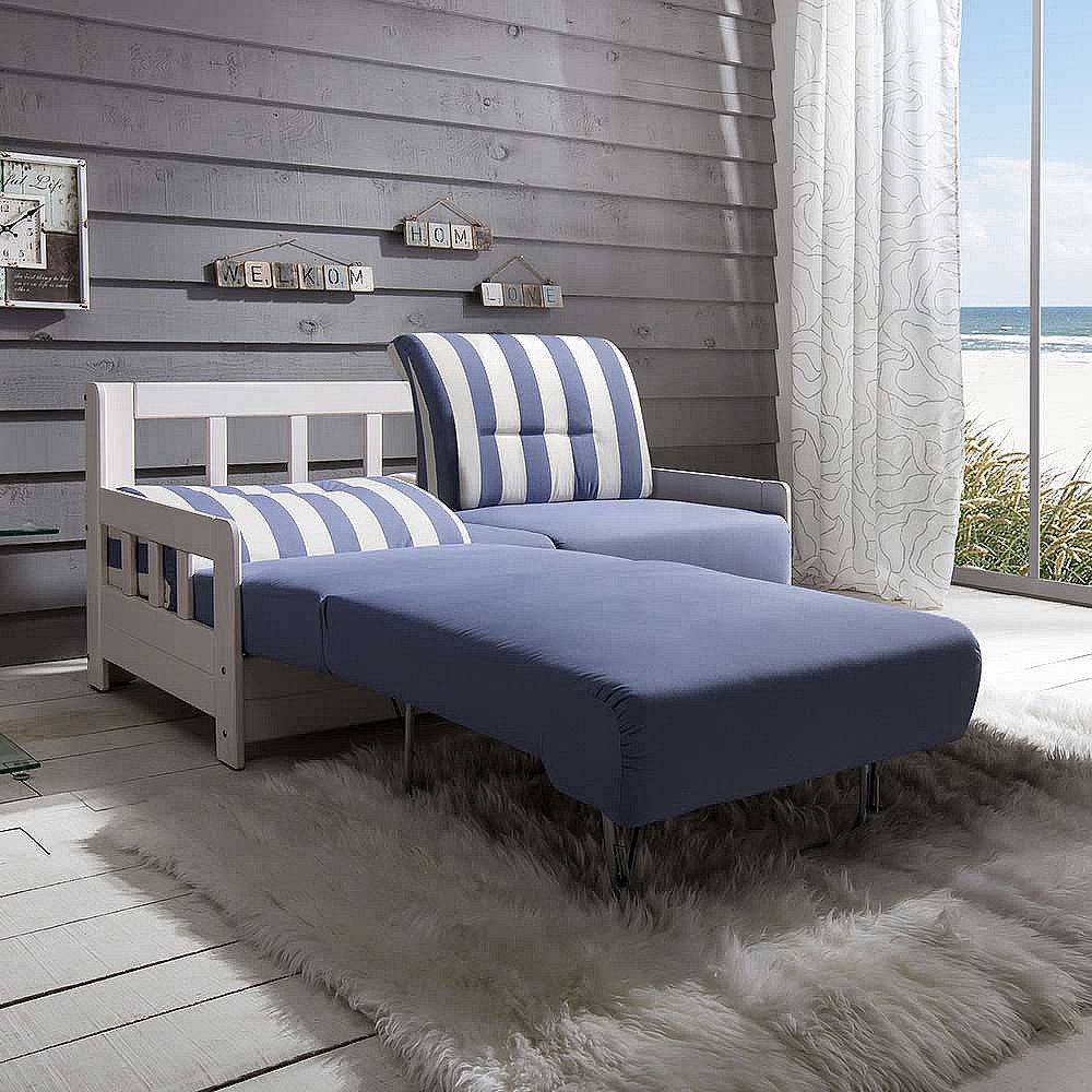 Maritimes Sofa mit Schlaffunktion Blau Weiß Streifen Muster