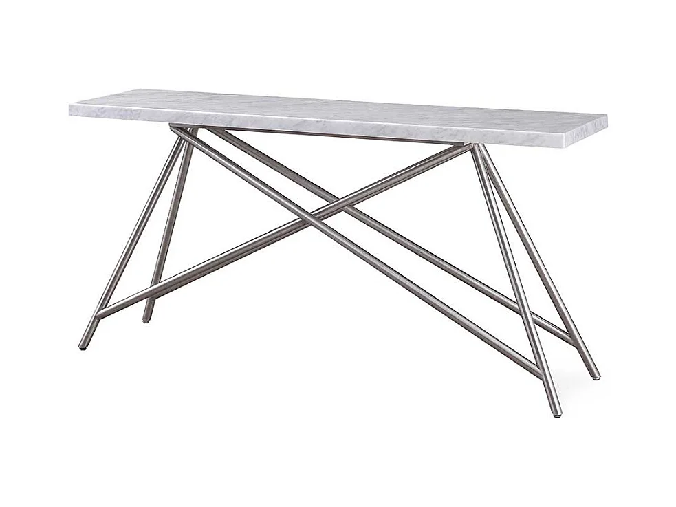 Marmor Konsolentisch in Weiß Vierfußgestell aus Edelstahl