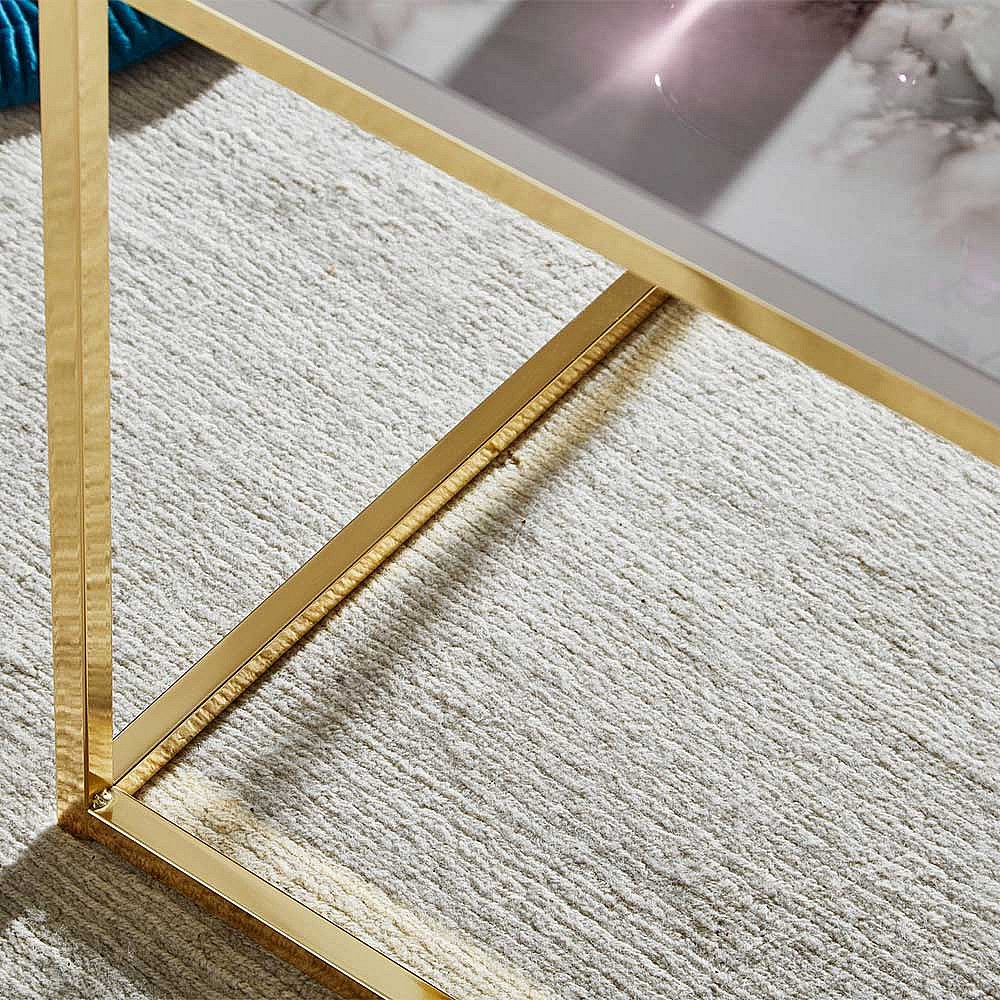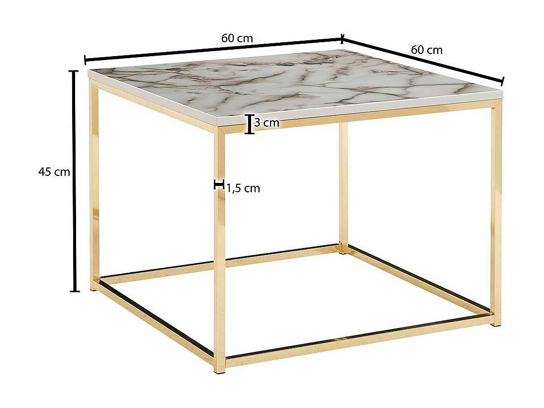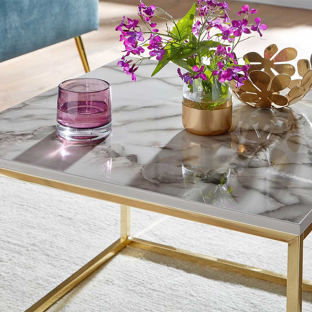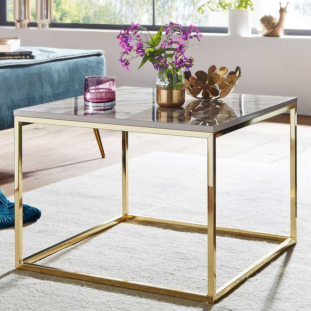 Marmor Optik Sofatisch in Grau Hochglanz Goldfarben