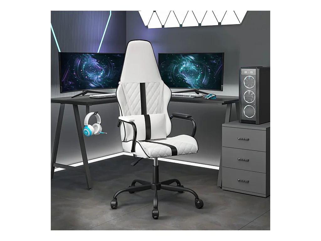 Massage-Gaming-Stuhl aus schwarzem und weißem Kunstleder