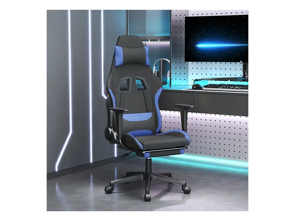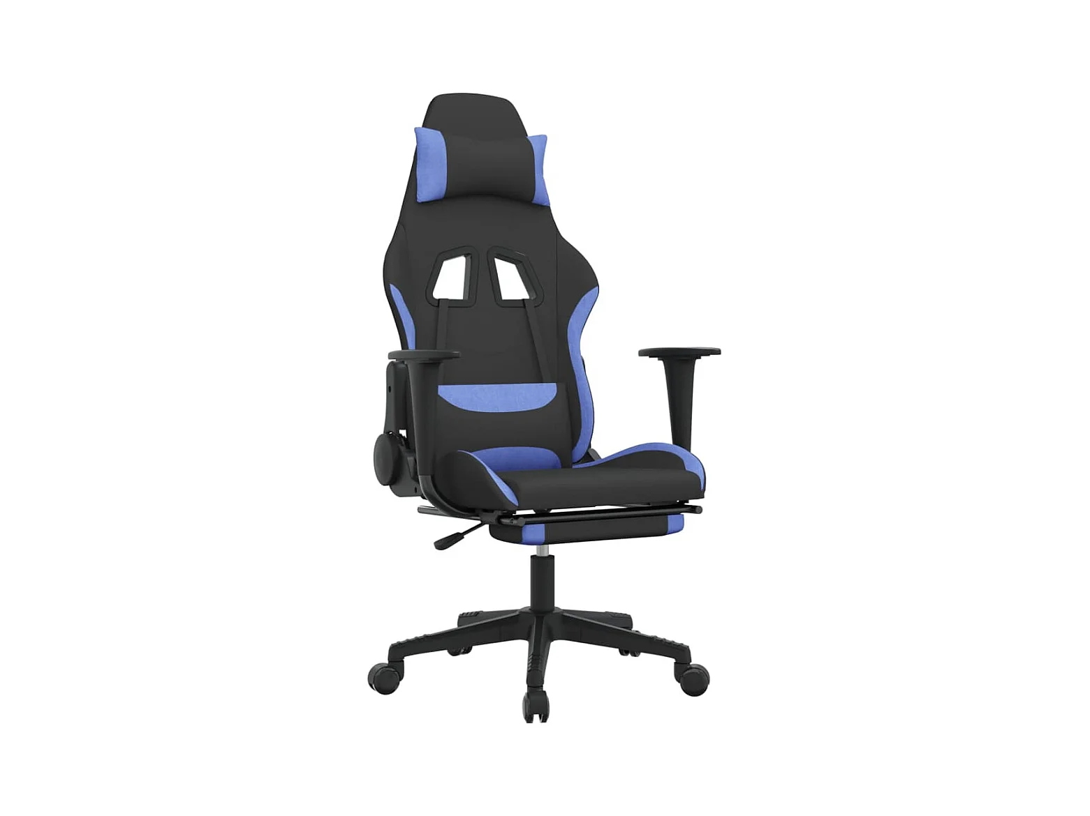 Massage-Gaming-Stuhl mit Fußstütze aus schwarzem und blauem Stoff