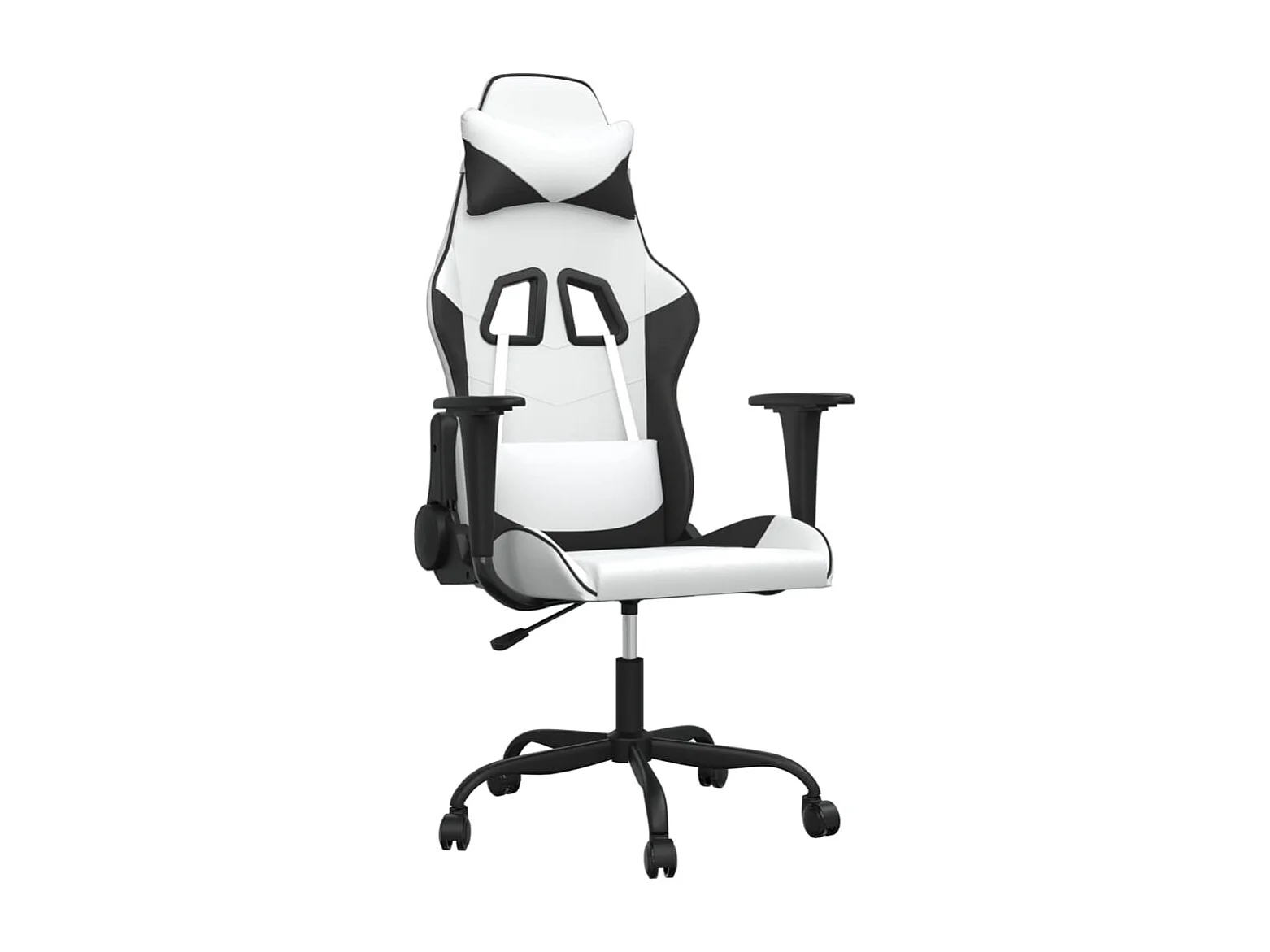 Massage-Gaming-Stuhl. Weißes und schwarzes Kunstleder