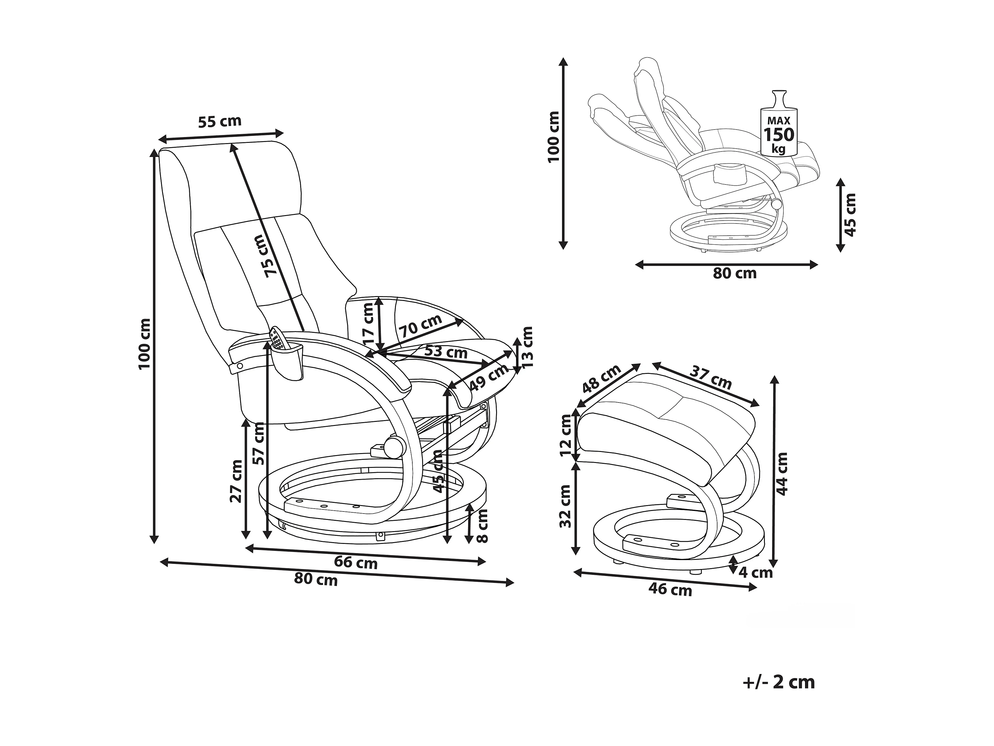 Massagesessel mit Heizfunktion, Timer und Fußhocker Kunstleder sandbeige Force