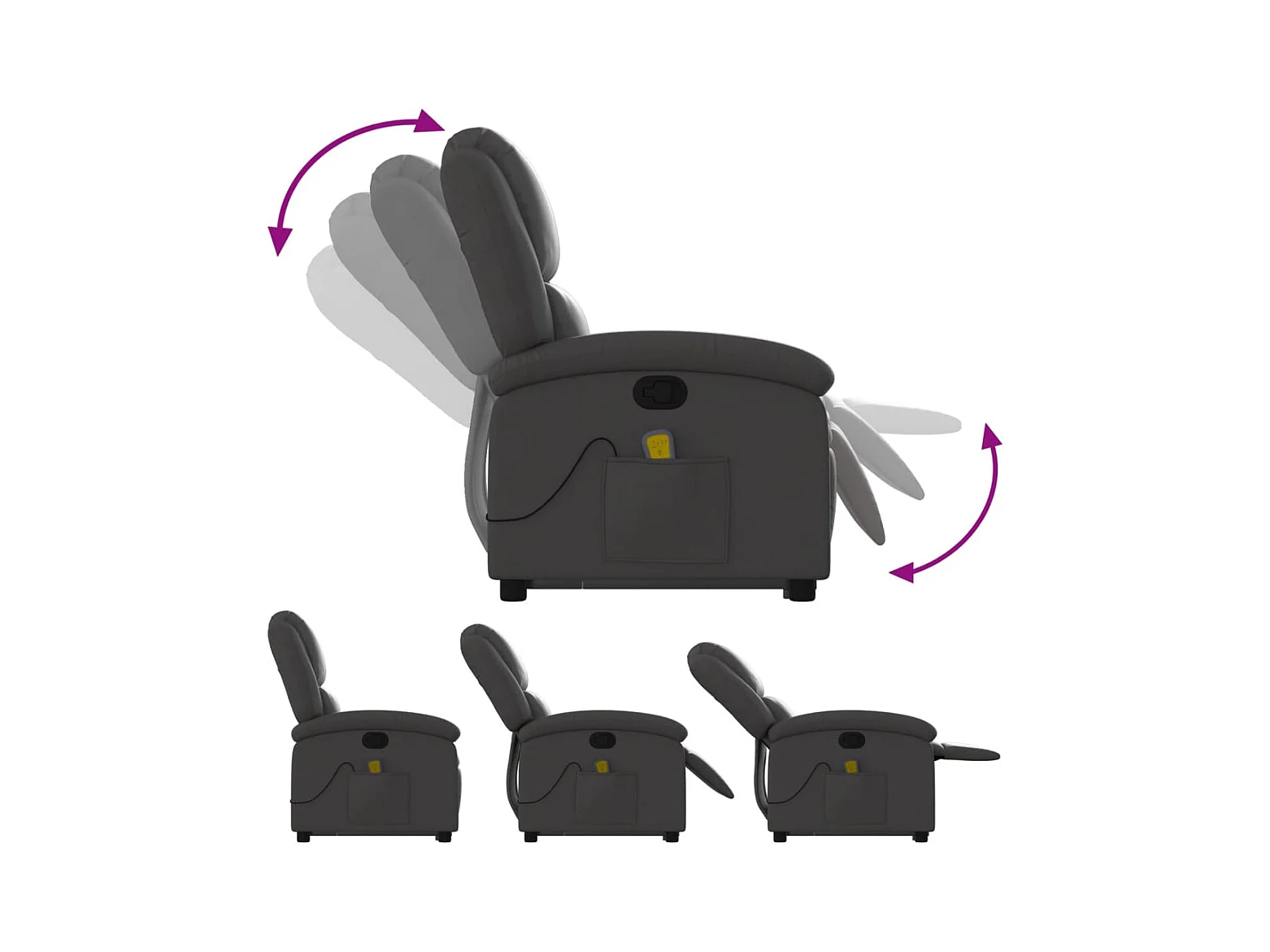 Massagesessel mit Aufstehhilfe Grau Echtleder