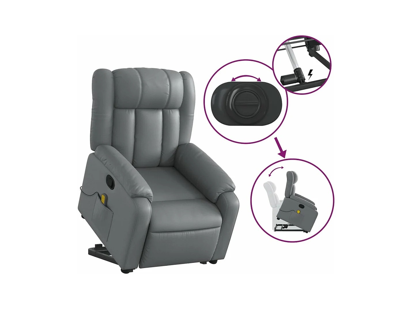 Massagesessel mit Aufstehhilfe Grau Kunstleder