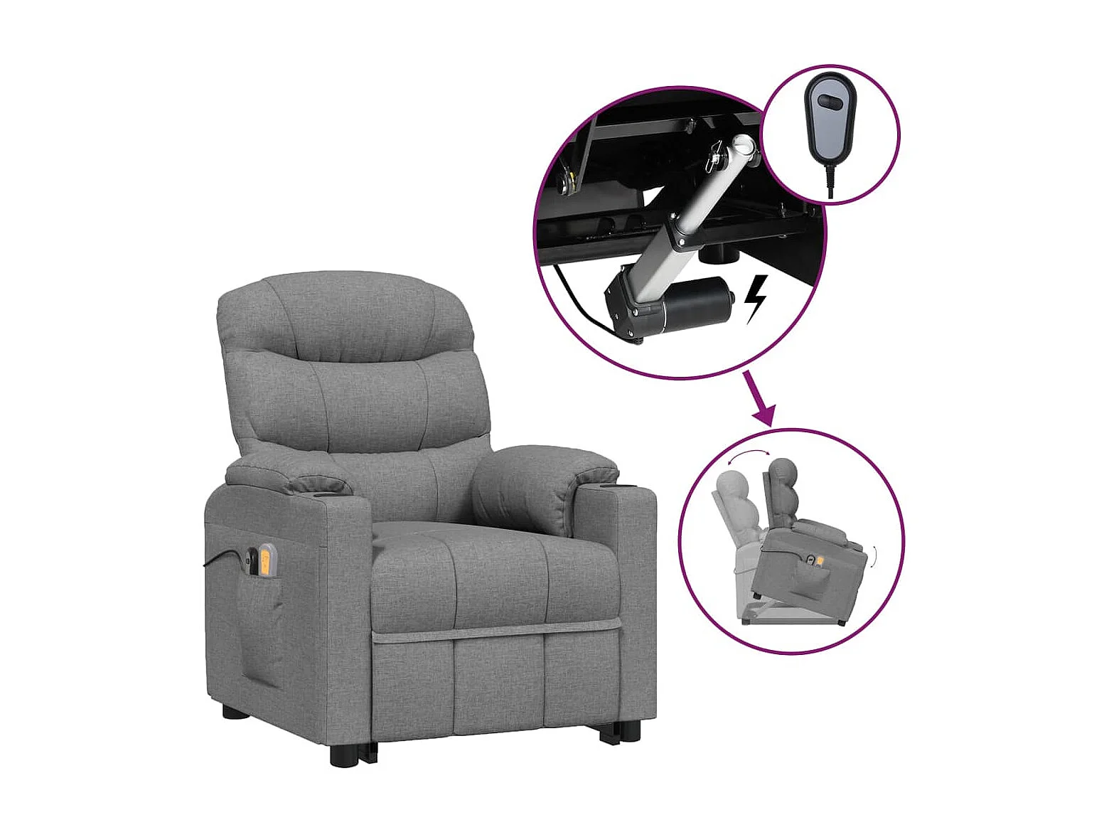 Massagesessel mit Aufstehhilfe Hellgrau Stoff