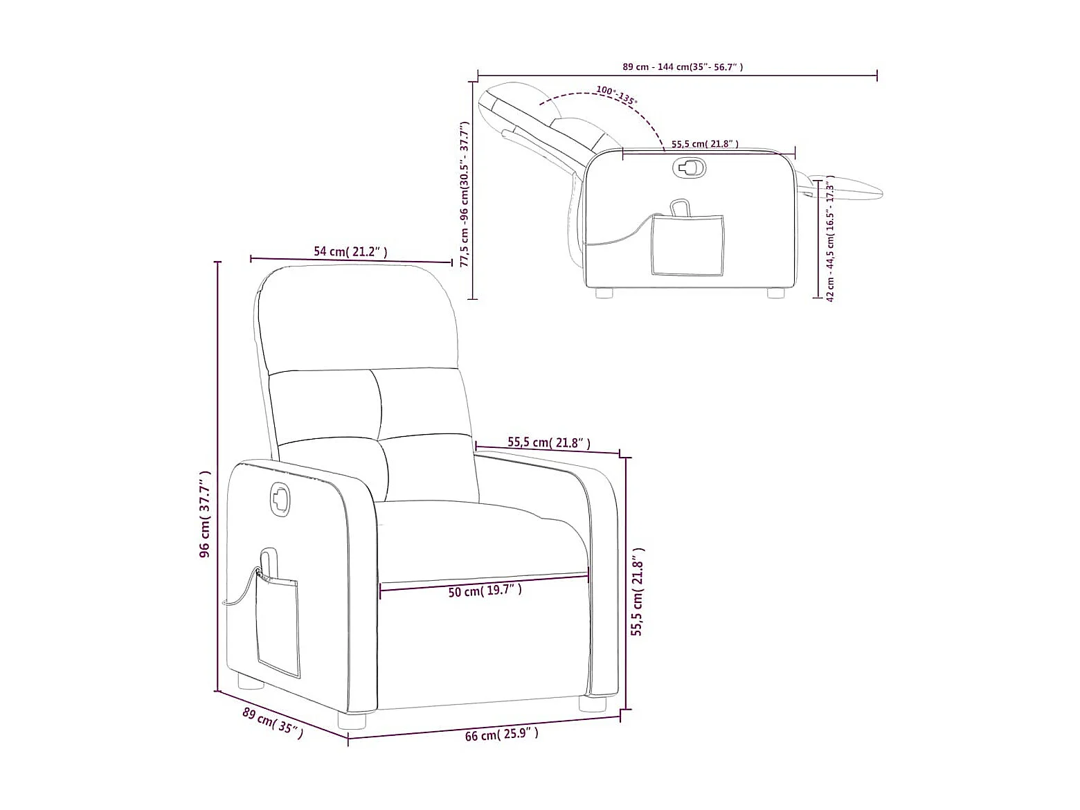 Massagesessel Weinrot Stoff
