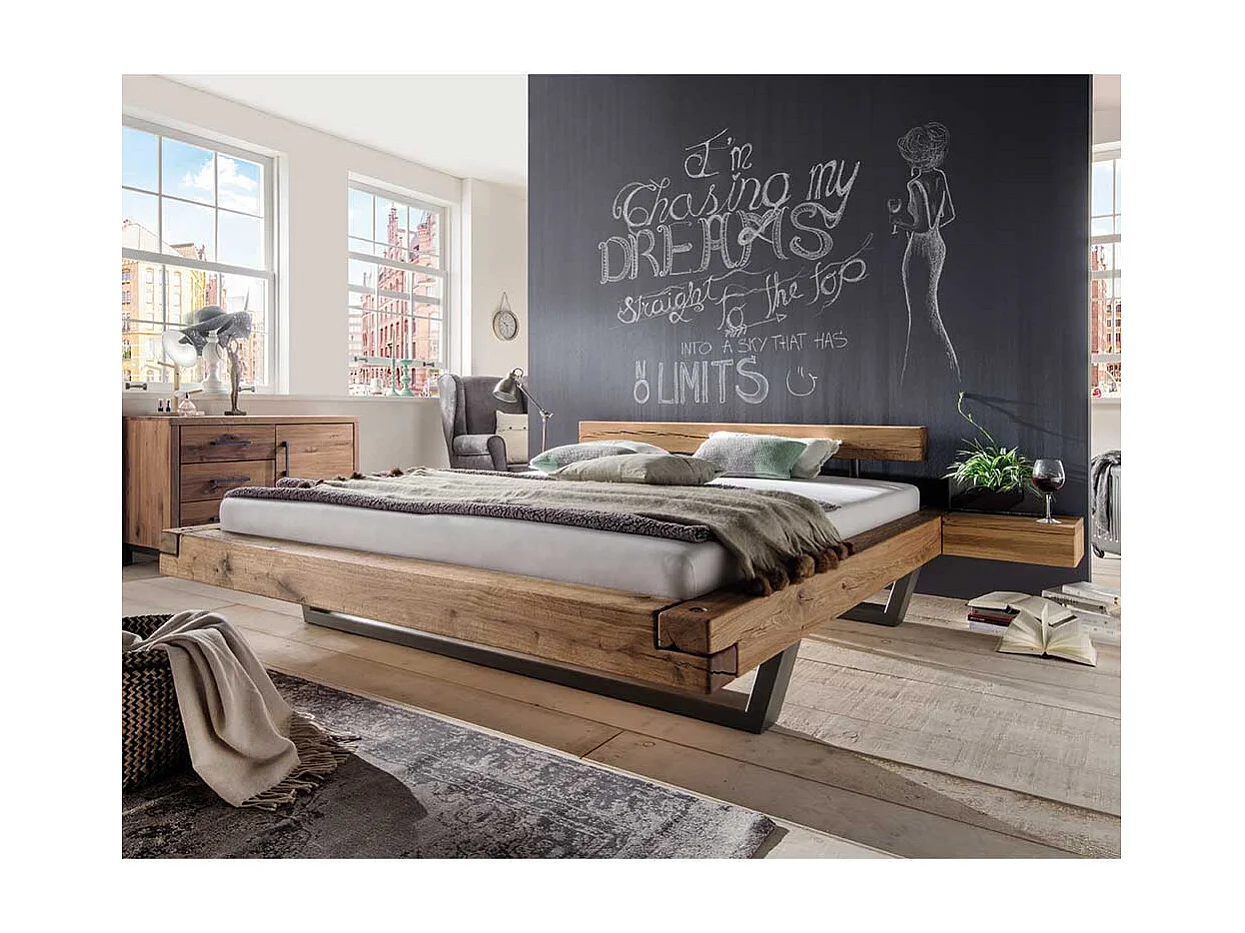 Massiv Balkenbett aus Wildeiche geölt kaufen (dreiteilig)