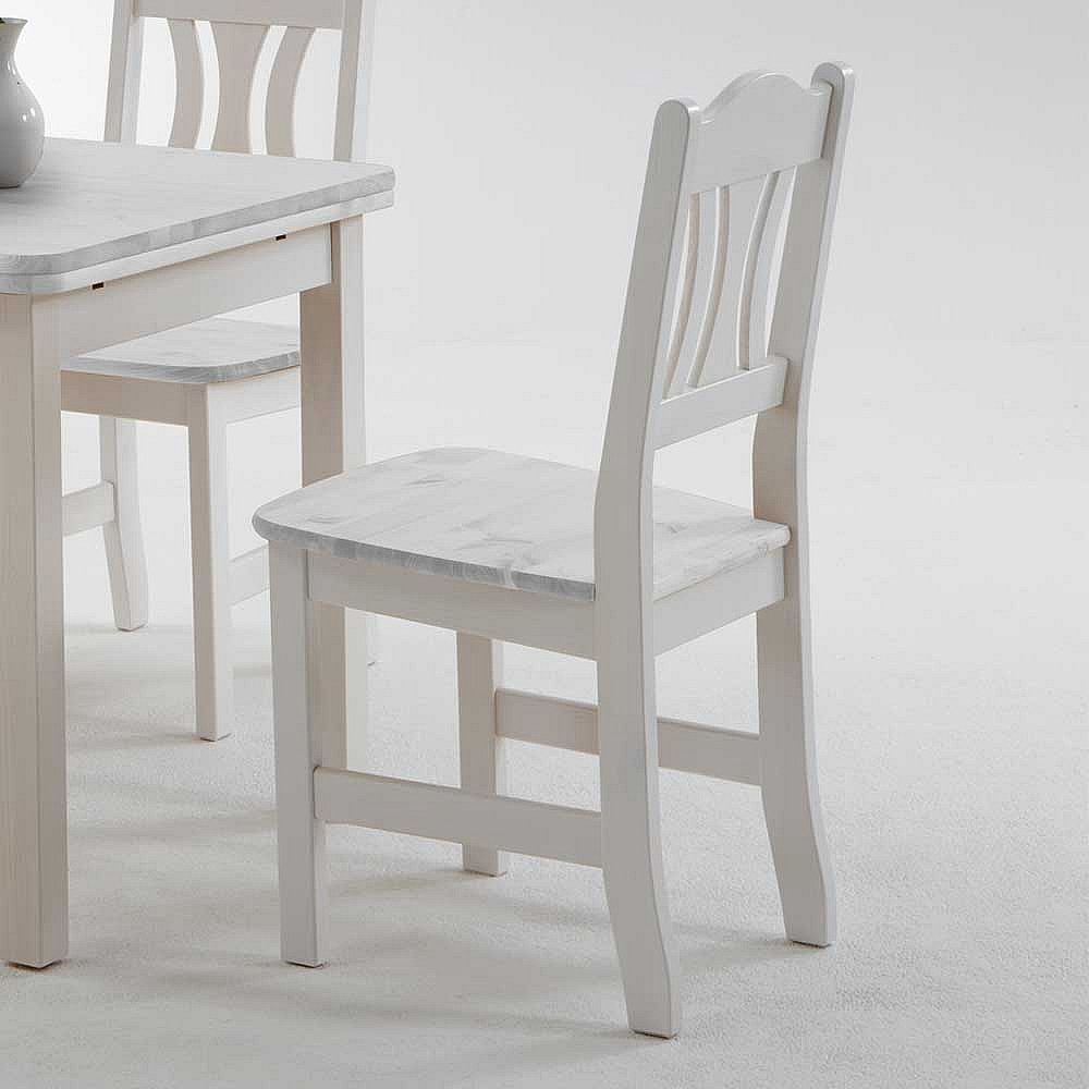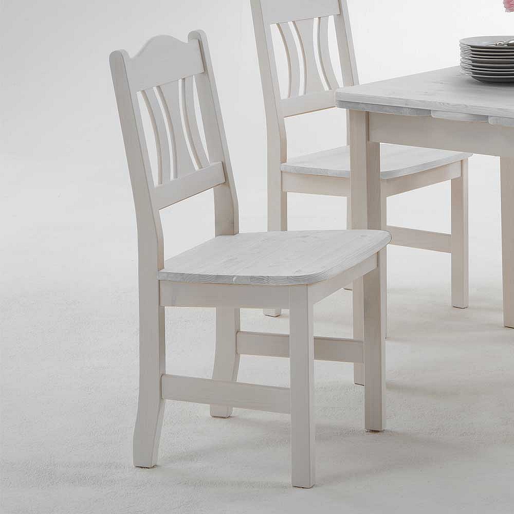 Massiv Esszimmerstuhl in Weiß Kiefer (2er Set)