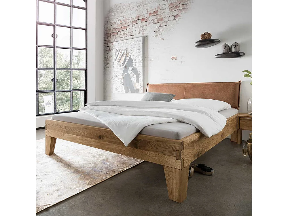 Massivbett mit Polster Kopfteil Wildeiche geölt