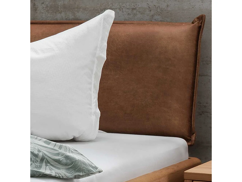 Massivbett Wildeiche mit zwei Nachtkommoden Polsterkopfteil (dreiteilig)