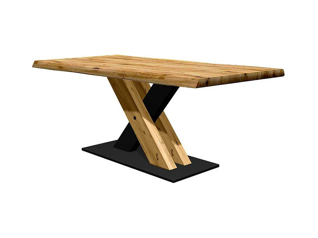 Massiver Esstisch aus Eiche und Metall natürlicher Baumkante