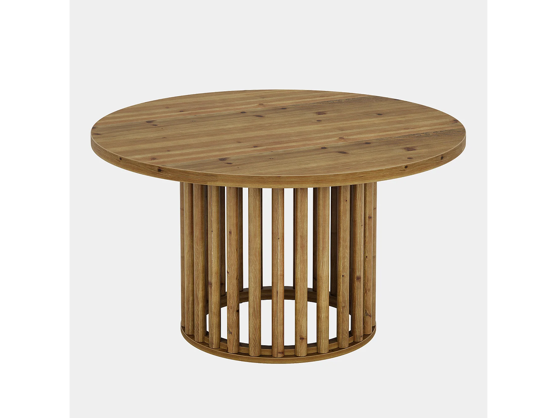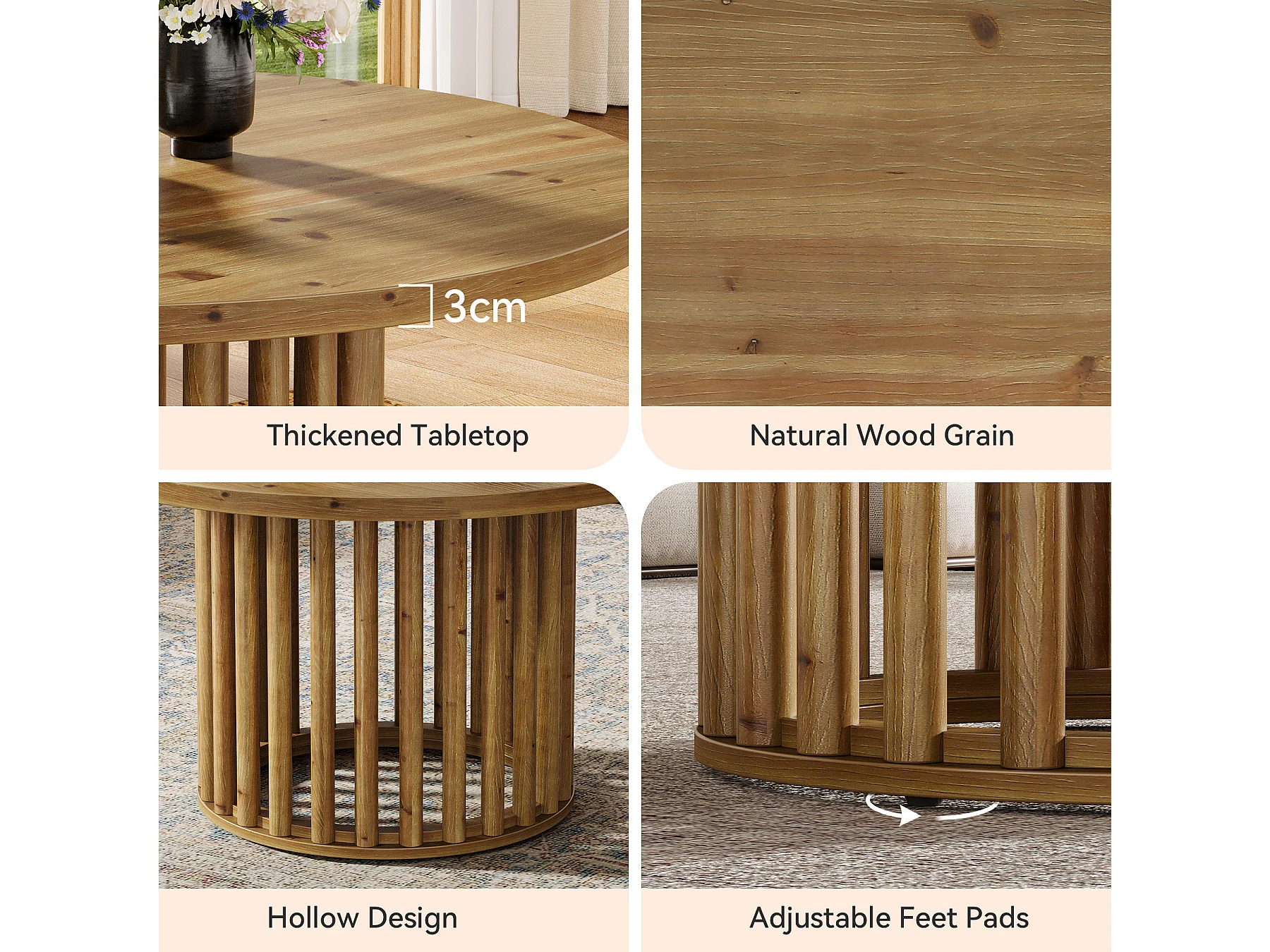 Massiver Holzrundes Couchtisch für das Wohnzimmer, 80cm Landhausstil Holzrundtisch mit zylindrischer hohler Basis