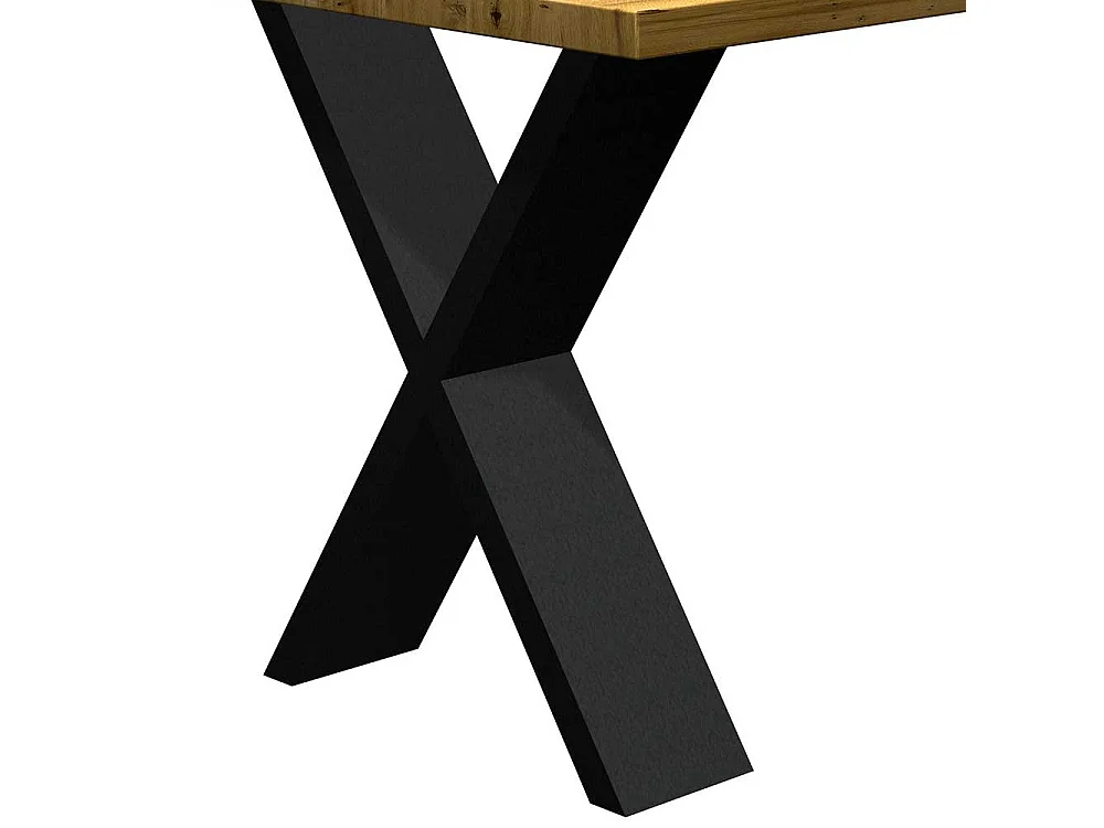 Massiver Tisch aus Eiche und Metall X Gestell in Schwarz