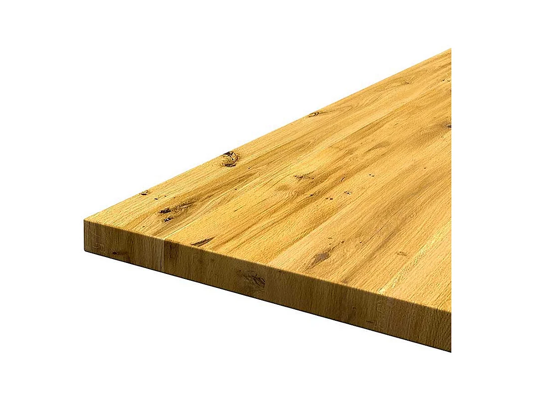 Massiver Tisch aus Eiche und Metall X Gestell in Schwarz