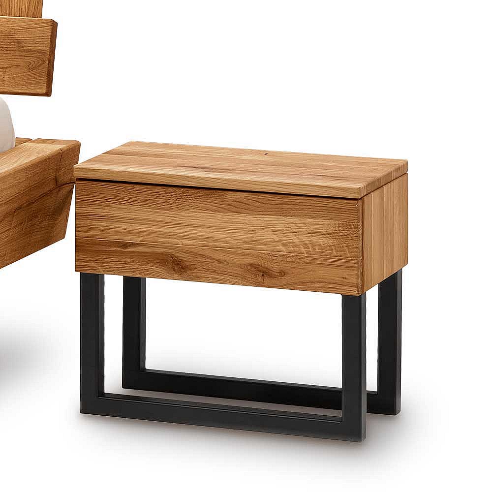 Massives Balkenbett im Industry und Loft Stil Wildeiche und Metall