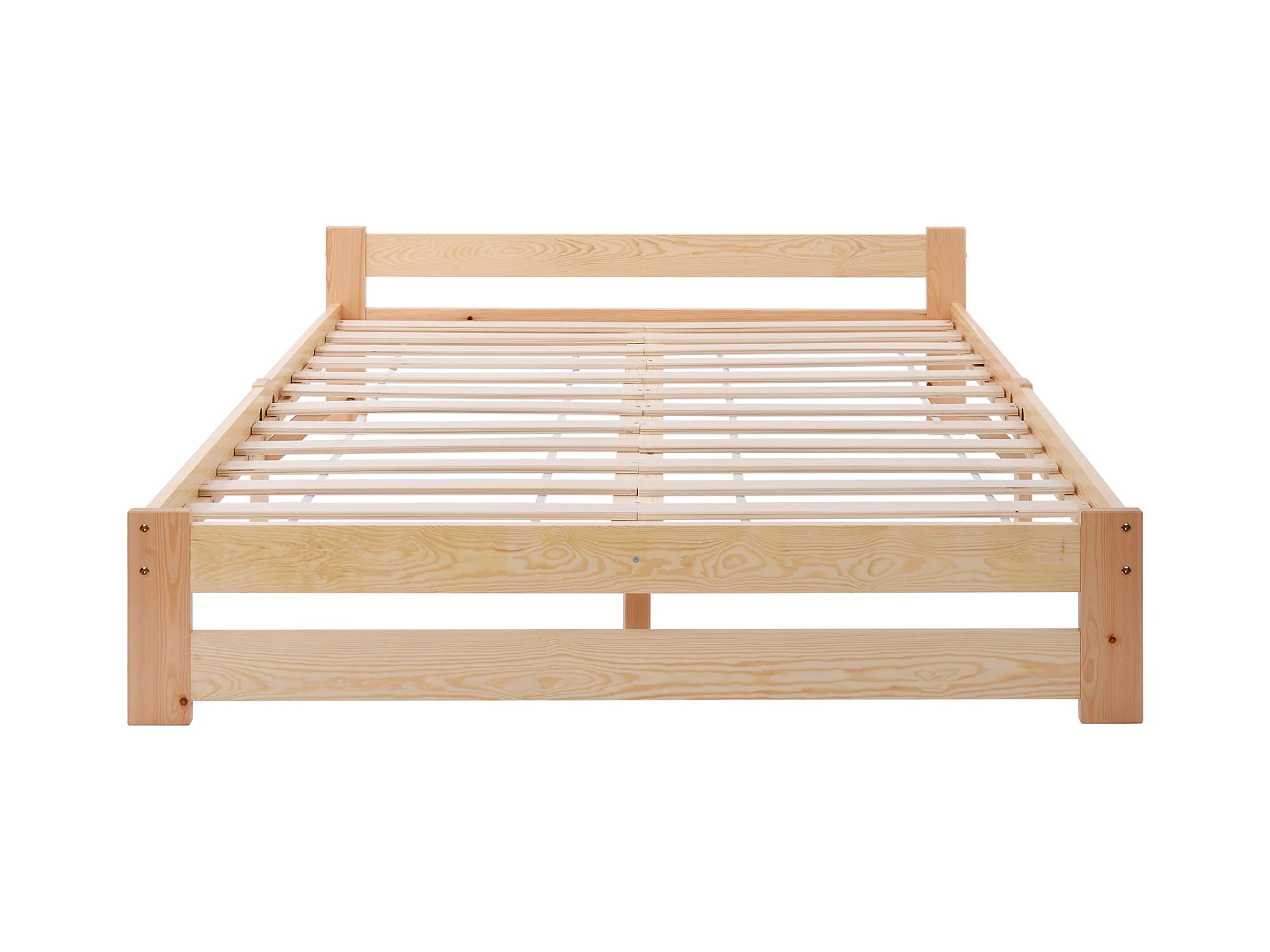Massives Futonbett 200x140 cm natur – Massivholz Doppelbett mit Kopfteil und Lattenrost