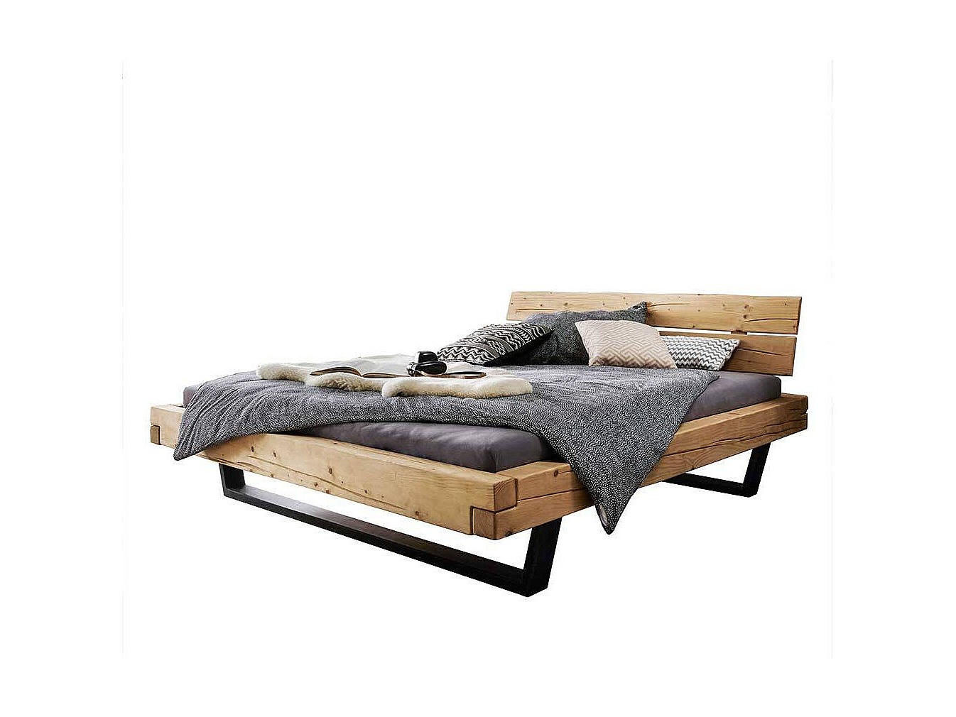 Massives Holzbett aus Fichte Bügelgestell