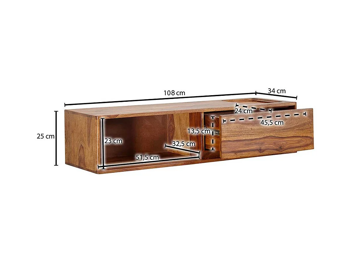 Massives TV Lowboard in Sheeshamfarben eine Schublade und ein Gerätefach