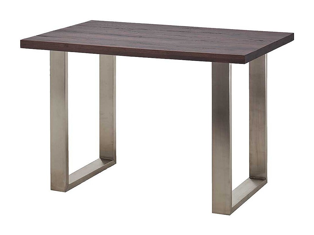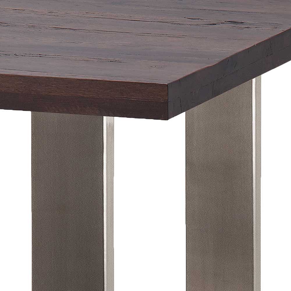 Massivholz Bartisch mit Bügelgestell Edelstahl Eiche verwittert