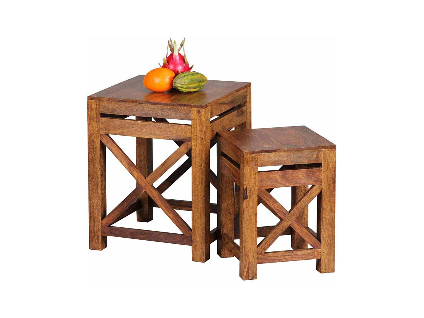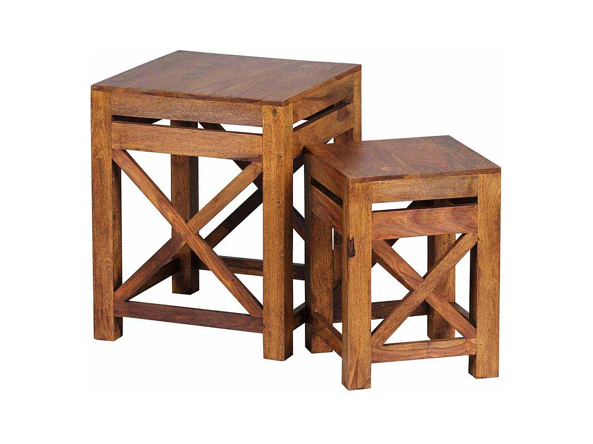 Massivholz Beistelltisch aus Sheesham lackiert Landhaus (zweiteilig)