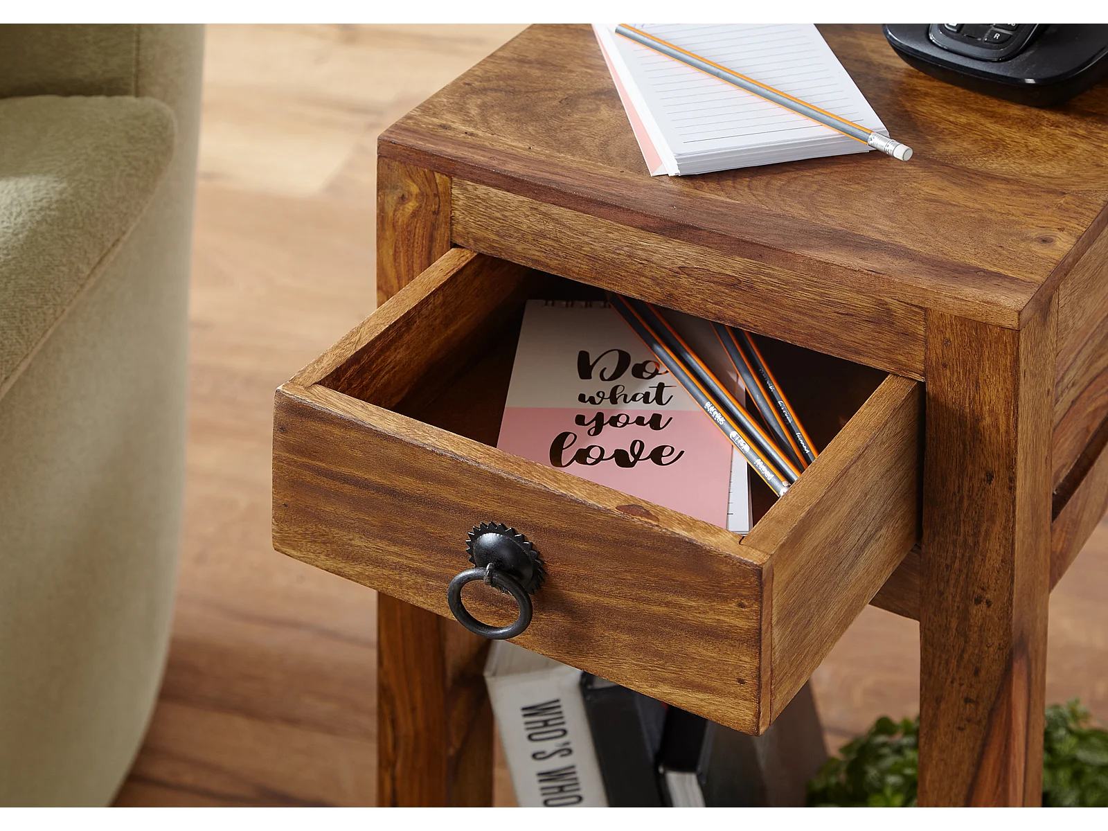 Massivholz Beistelltisch Telefontisch 30 x 30 x 68 cm mit Schublade neu