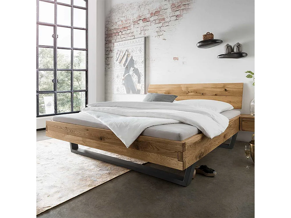 Massivholz Bett aus Wildeiche geölt Metallkufen