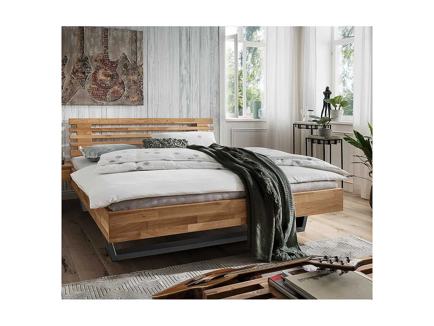 Massivholz Bett aus Wildeiche geölt Metallkufen in Anthrazit