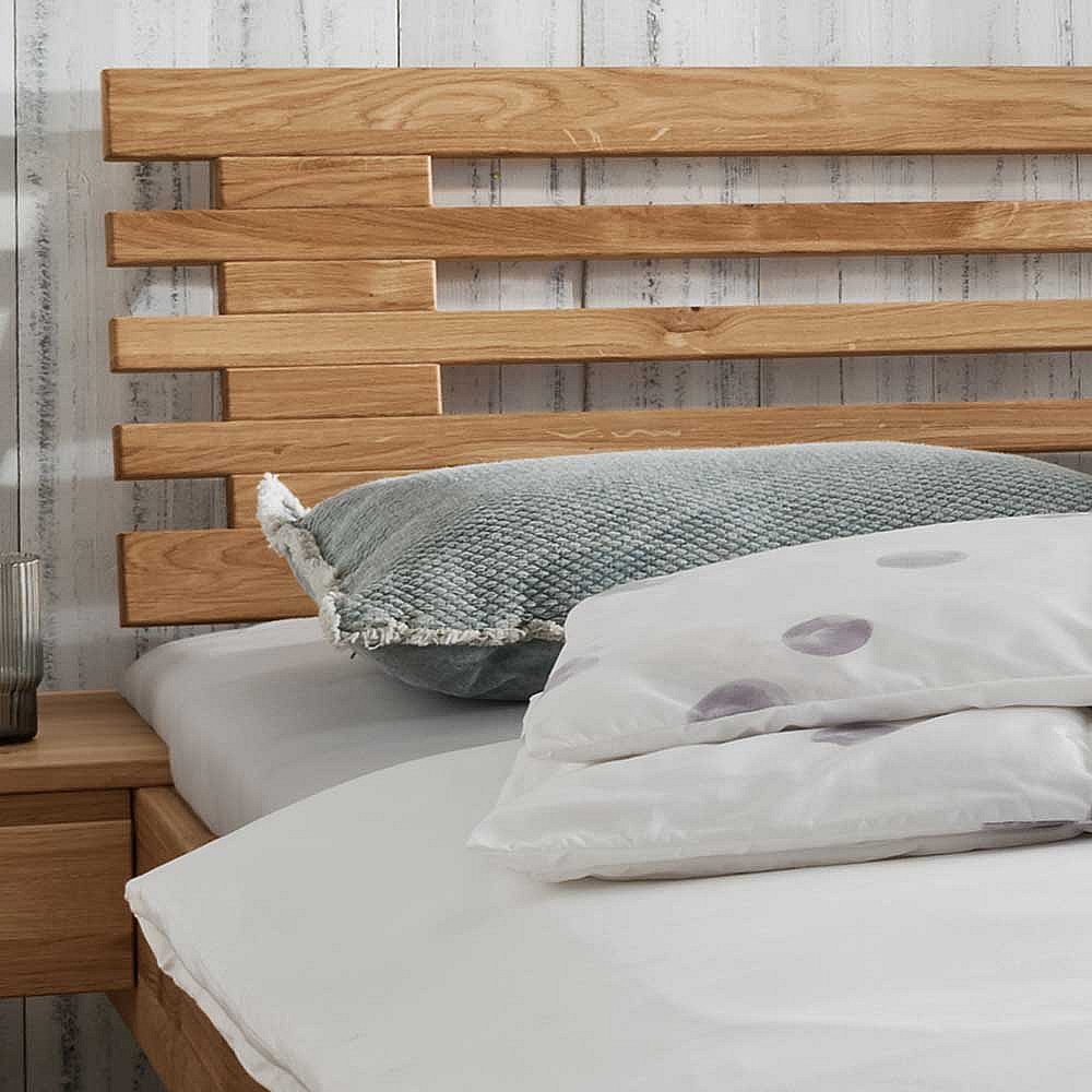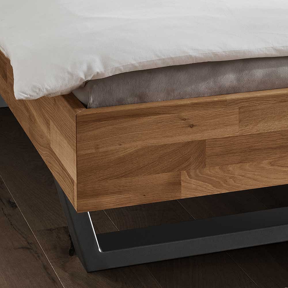 Massivholz Bett aus Wildeiche geölt Metallkufen in Anthrazit
