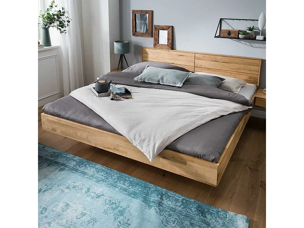 Massivholz Bett aus Wildeiche geölt Schwebesockel