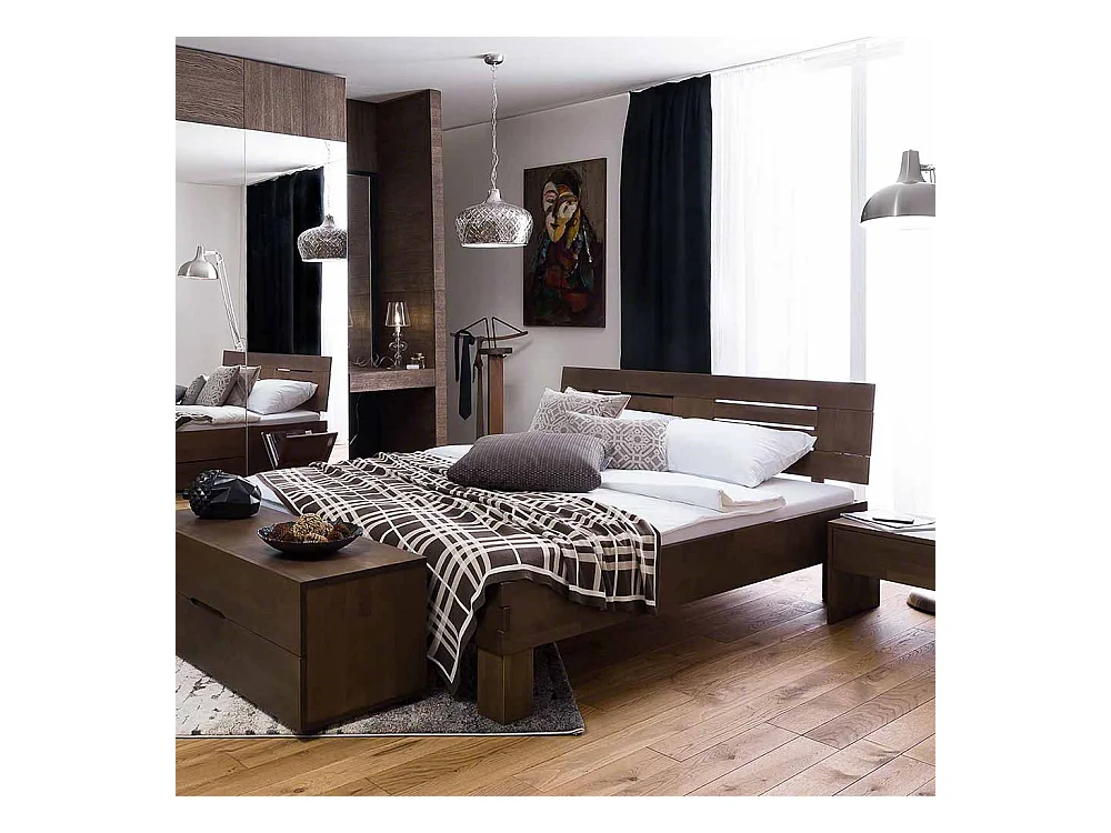 Massivholz Bett in Wengefarben Buche lackiert