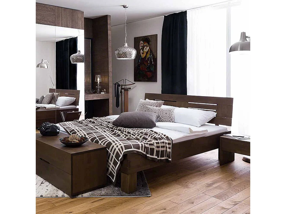 Massivholz Bett in Wengefarben Buche lackiert